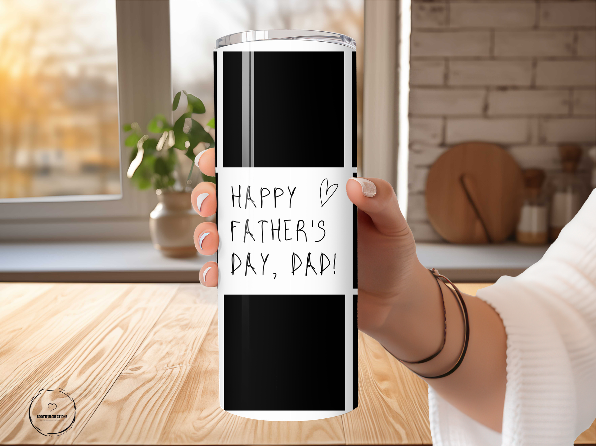 Show your dad how much you love him with our Personalized Father's Day Photo Tumbler. Keep his drinks hot for up to 6 hours or cold for up to 24 hours while displaying 8 treasured photos. The central section features a heartfelt message and can be personalized with his name. Perfect for the sentimental dad!