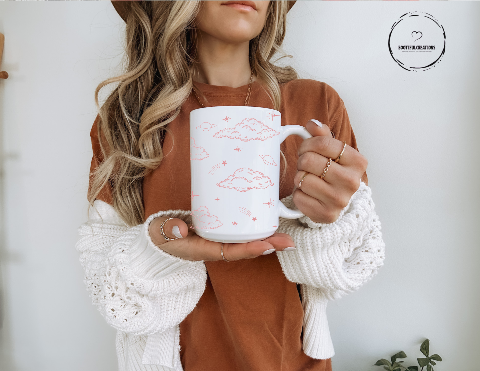 Indulge in your morning coffee ritual with our Pink Clouds Coffee Mug. The dreamy pink clouds design evokes a sense of calm and tranquility, while the spacious 11oz or 15oz capacity ensures you'll have plenty of caffeine to fuel your day. Made of high-quality ceramic, this mug is both sturdy and stylish. Elevate your coffee game and add a touch of whimsy to your kitchen with our Pink Clouds Coffee Mug.