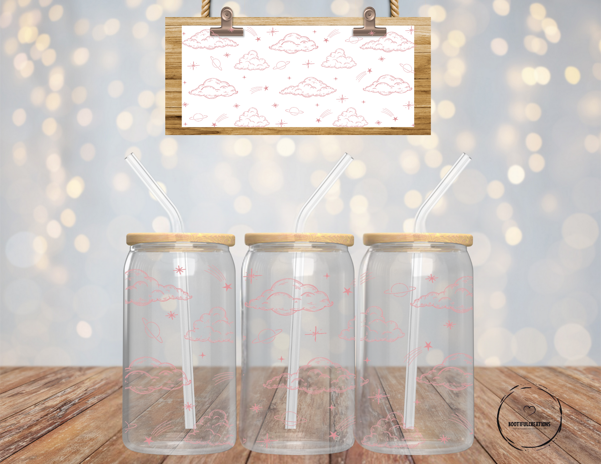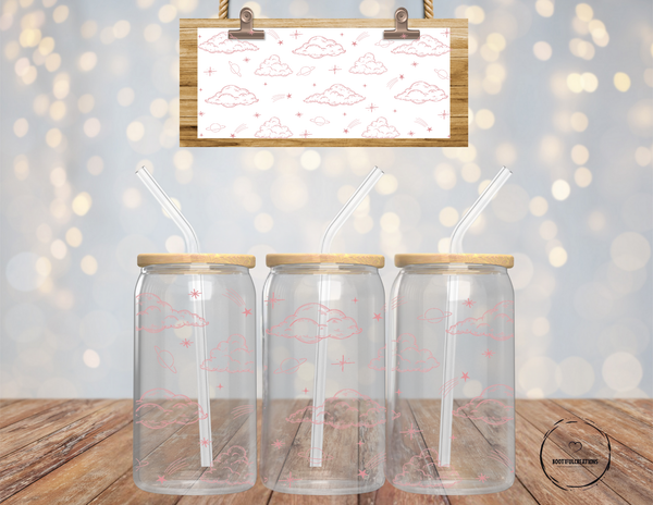 Experience the beauty and serenity of the Pink Clouds Glass Cup. With its stunning pink cloud design and 16oz capacity, you can enjoy your favorite beverage in style. Choose between a clear or frosted finish. Transform your daily drink into a heavenly experience.