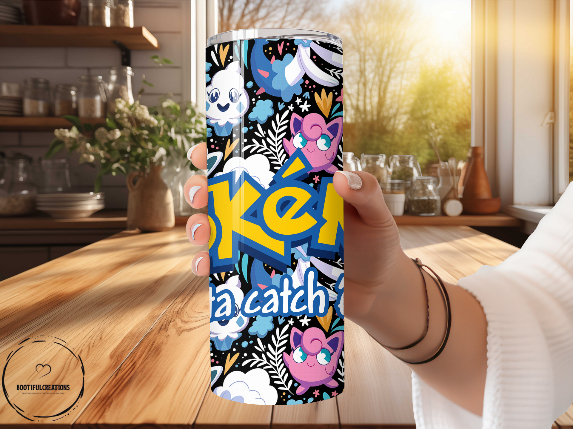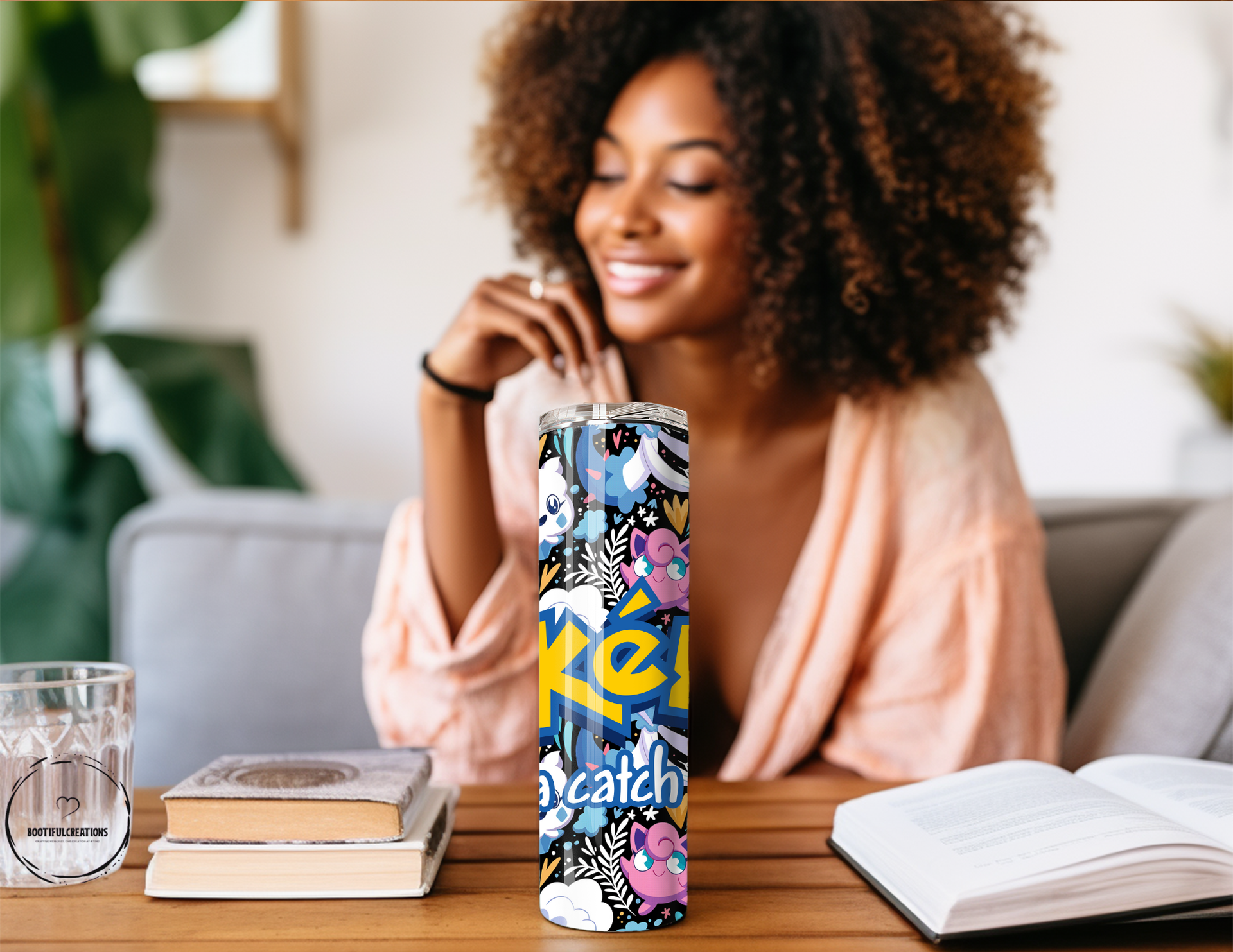 Catch all your favorite Pokémon while on the go with this playful and colorful tumbler. Featuring the iconic phrase "Gotta catch 'em all!" and the ability to keep your drinks hot for up to 6 hours and cold for up to 24 hours, this tumbler is perfect for any fan. Personalize it with your own name for added fun!