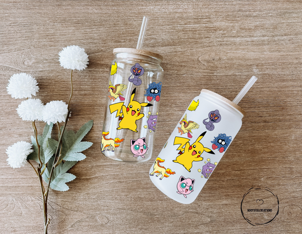 Quench your thirst in style with our Pokémon Glass Cup! This 16oz cup is perfect for holding your favorite beverage while showcasing your love for Pokémon. Choose between a clear or frosted design and catch 'em all with every sip. Gotta have it!