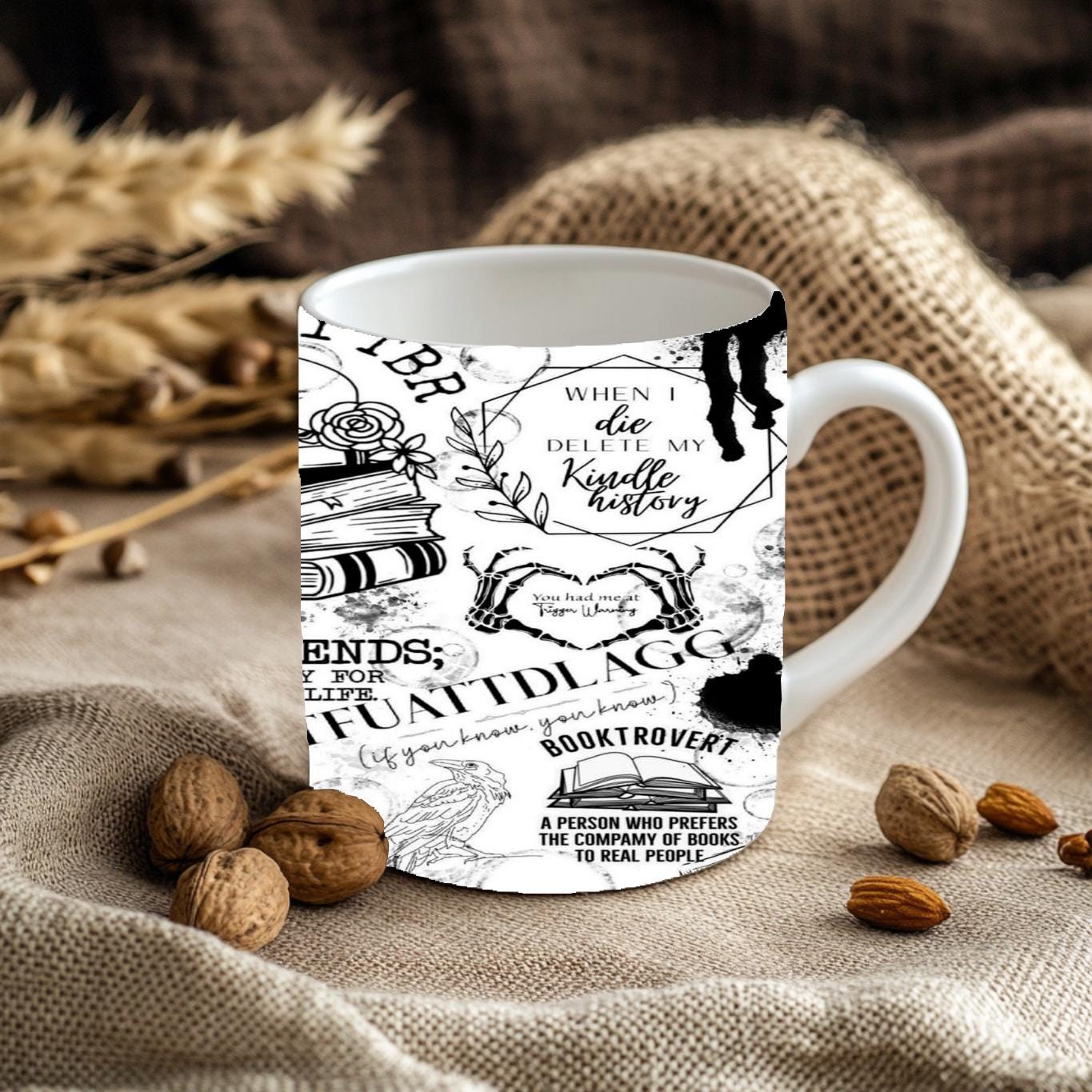 Calling all bookworms, bibliophiles, and literary fanatics! This mug is designed especially for you, celebrating all the relatable (and sometimes sassy) aspects of a life devoted to reading. Featuring a unique, monochrome collage of phrases and illustrations, it’s the perfect companion for your next reading marathon or a thoughtful gift for your favorite reader.