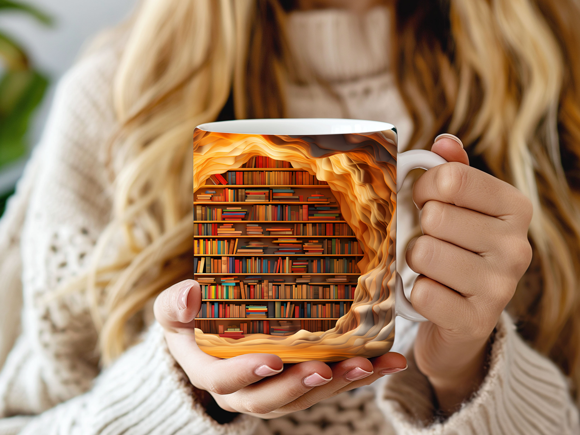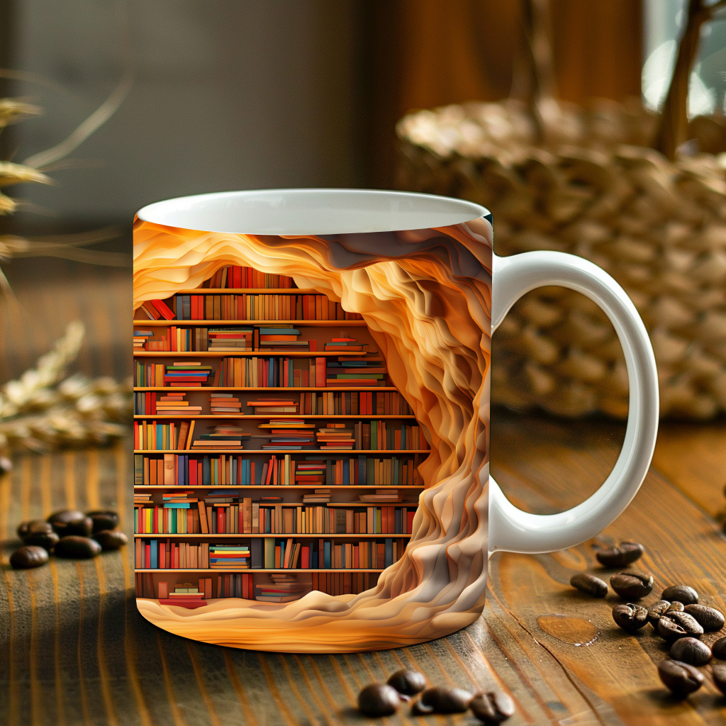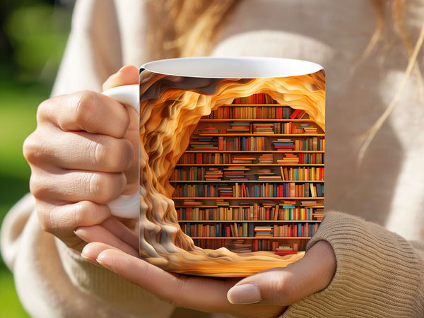 Enchanted Library Tunnel Mug - Unique Booklover's Coffee Cup