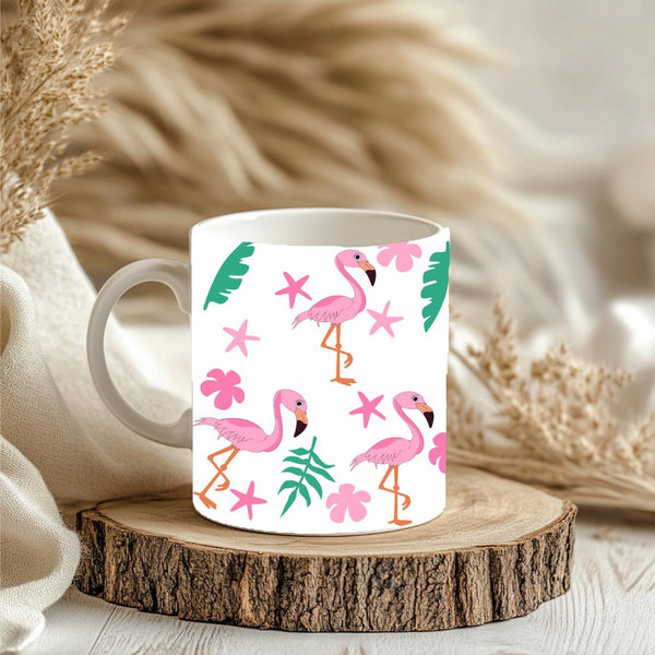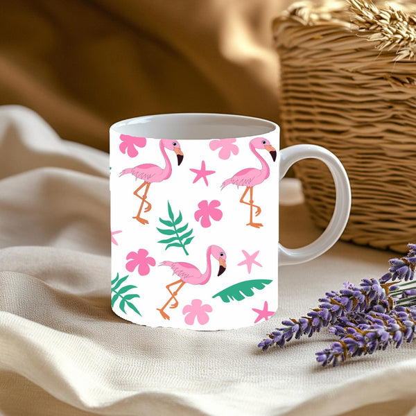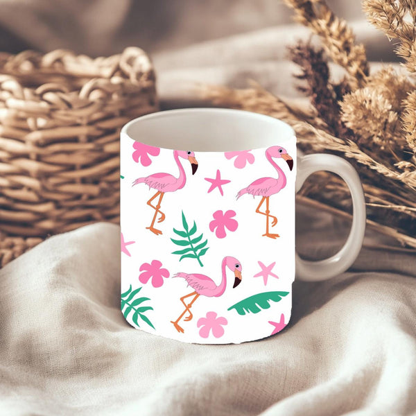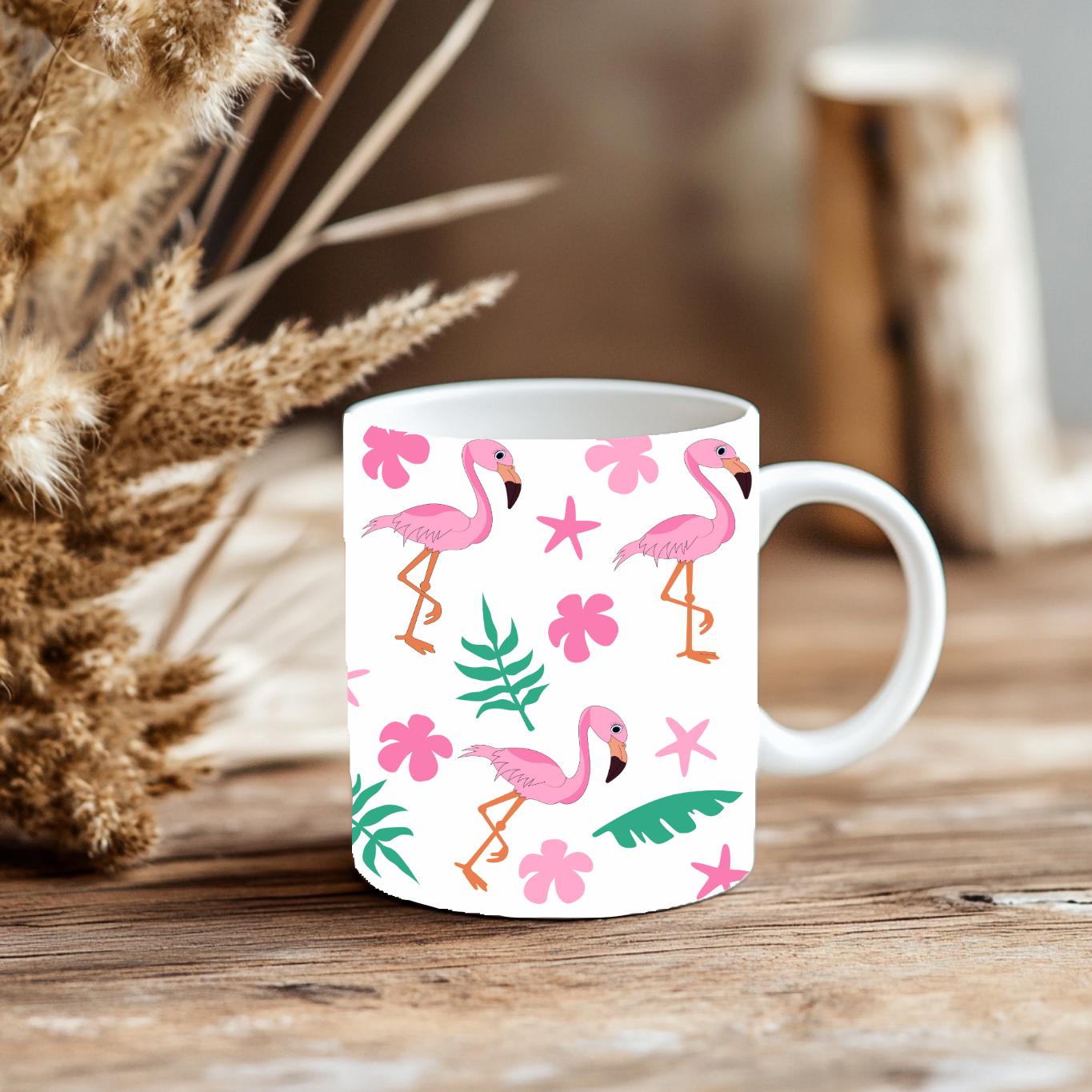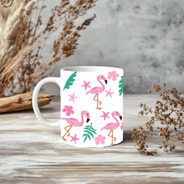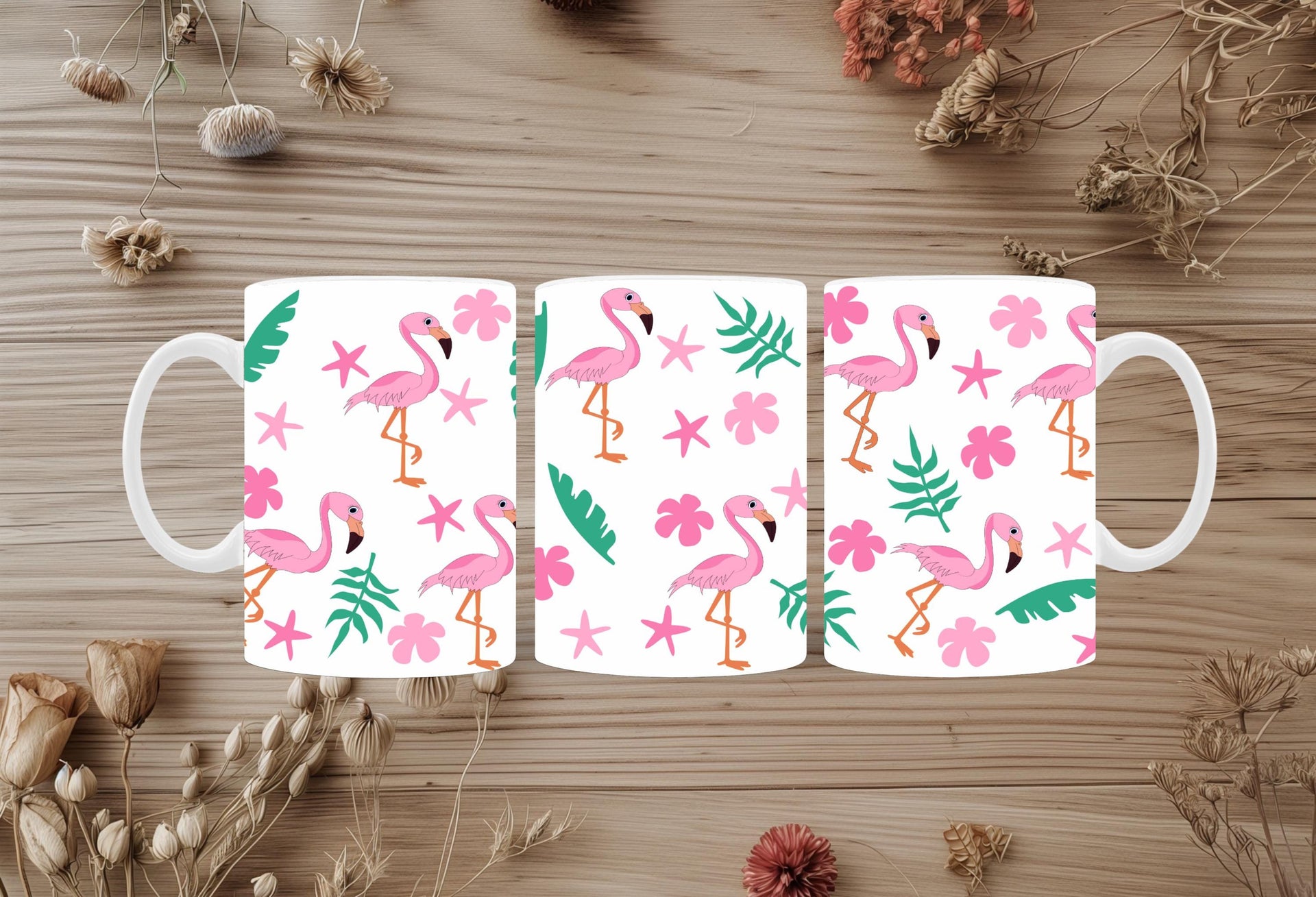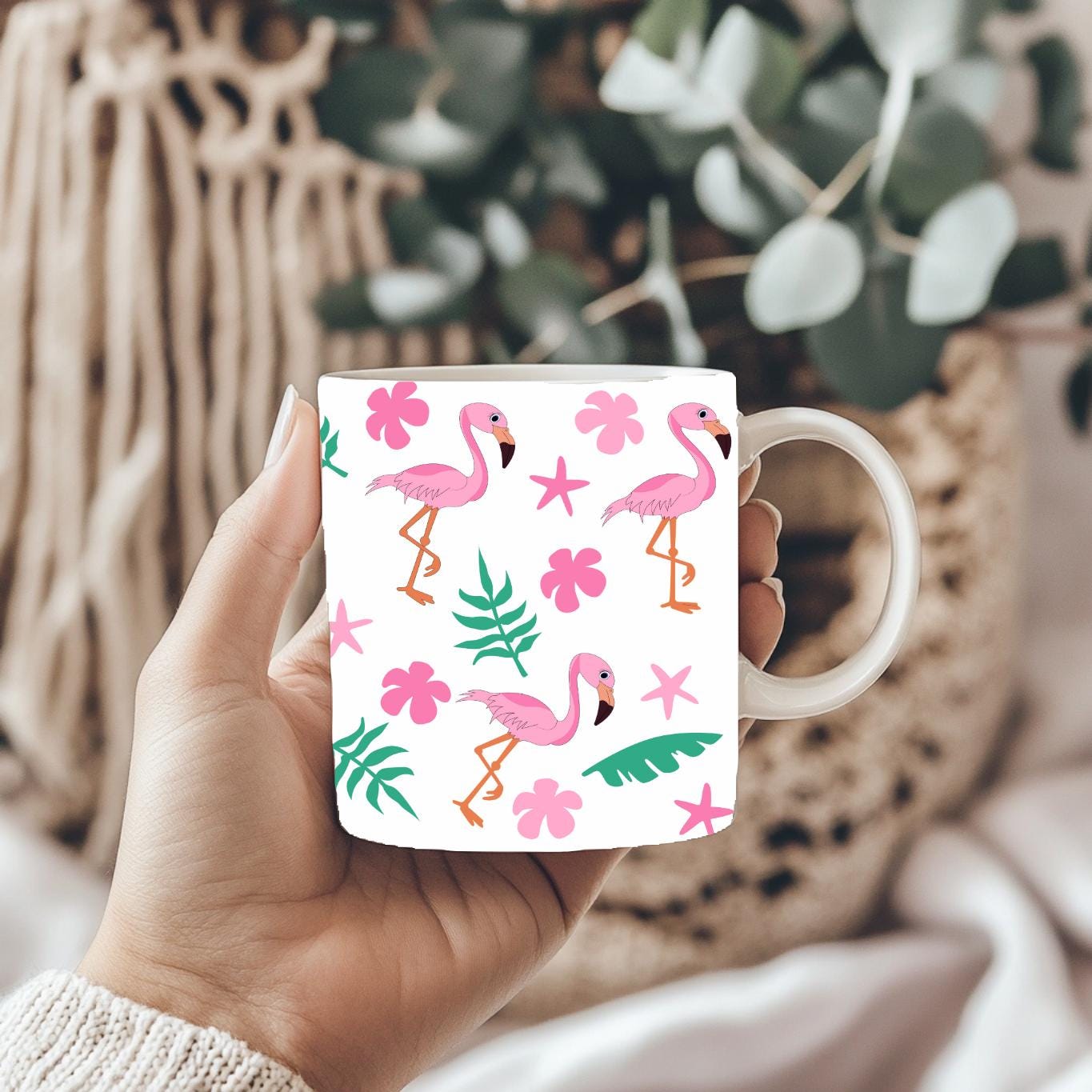 This Flamingo Coffee Mug combines elegance and a touch of the tropics with its vivid flamingo pattern and pink flowers. Available in 11oz or 15oz, this ceramic mug is perfect for your morning coffee or afternoon tea. Embrace your inner flamingo and add some color and flair to your everyday routine!