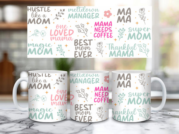 Sip your morning coffee in style with our Loving Mom Sayings Coffee Mug! This ceramic mug comes in 11oz or 15oz and features charming phrases like "hustle like mom" and "one loved mama". Perfect for any busy mom who needs a boost. Treat yourself or give as a gift to the best mom ever!