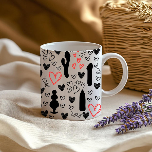 Hilarious and Playful Design: The fun, hand-drawn doodle style featuring hearts and discreet adult shapes makes this mug a guaranteed source of smiles. The "GOOD VIBES only" message is a daily affirmation with a naughty twist!