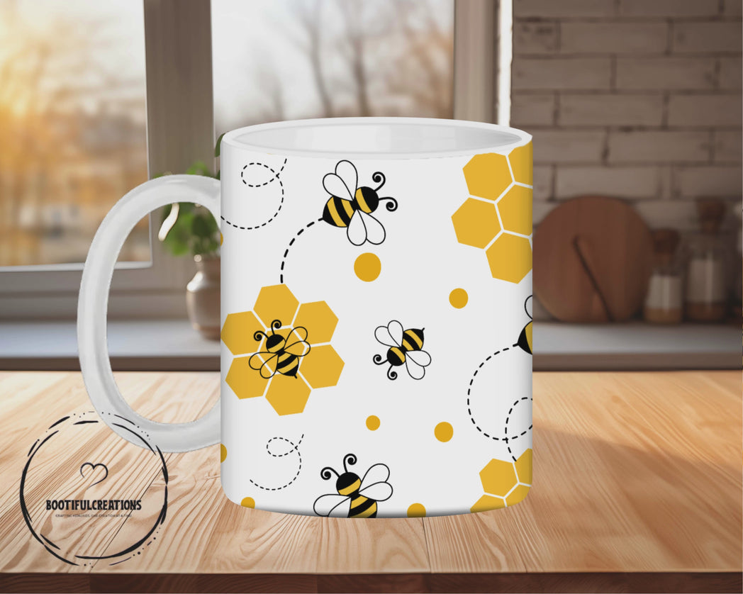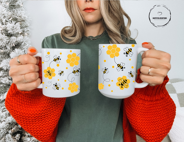 Savor your morning brew in our Honeybees Coffee Mug! The beautiful design features buzzing bees and a honeycomb pattern, while the ceramic material keeps your coffee at the perfect temperature. Available in both 11oz and 15oz sizes, it's the perfect way to start your day with a touch of nature.