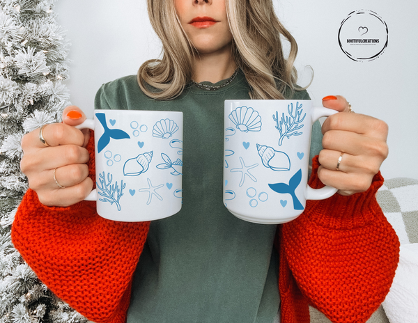 Indulge in some ocean vibes every morning with our Mermaid Coffee Mug! This beautiful ceramic coffee mug features a whimsical mermaid design and is available in both 11oz and 15oz sizes. Start your day off right with a touch of magic and style in every sip.