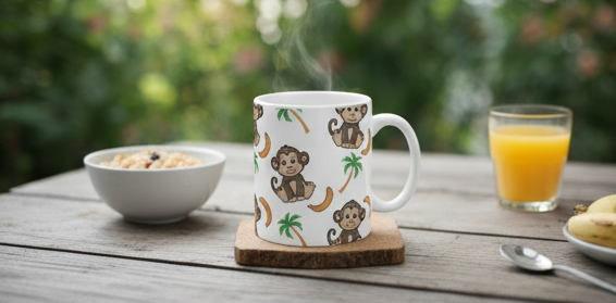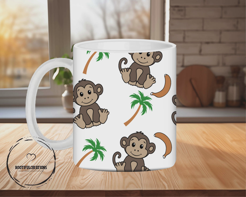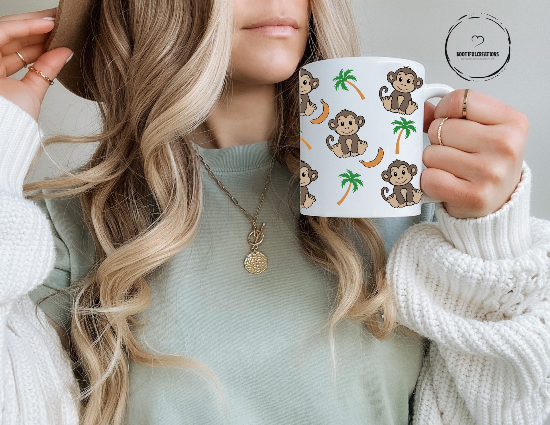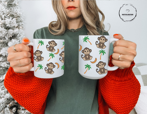 Add some playful charm to your morning routine with our Monkey Coffee Mug. Featuring adorable monkeys and palm trees, this 11oz or 15oz ceramic mug will make every sip of your favorite beverage feel like a tropical retreat. Start your day off right with this must-have mug!