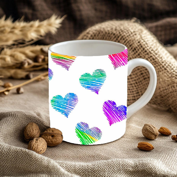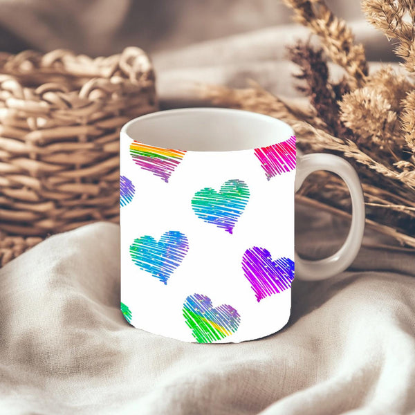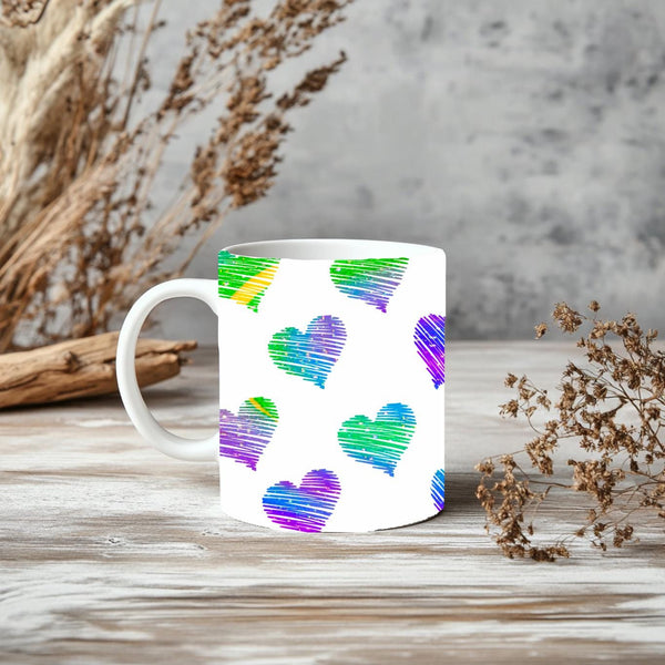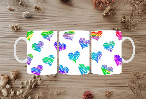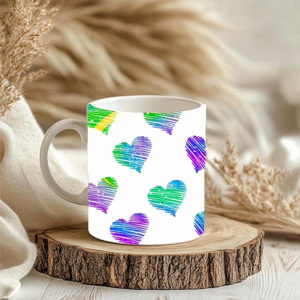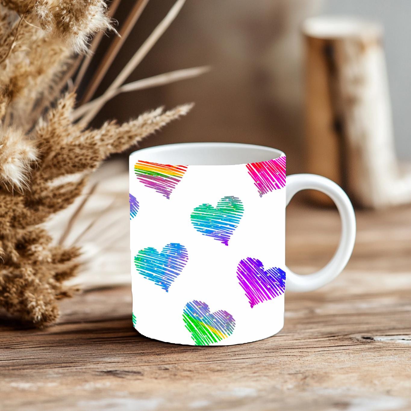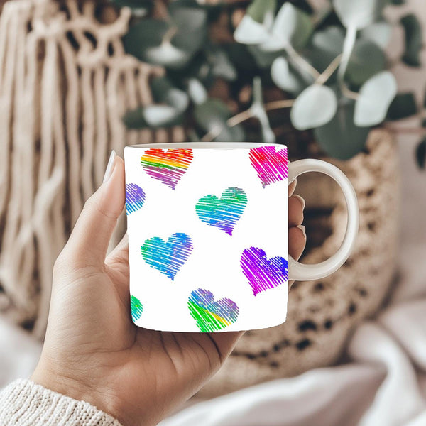 Unleash a burst of color and love with our Rainbow Hearts Coffee Mug! This 11oz or 15oz ceramic mug features a vibrant rainbow hearts design, making each sip of your favorite beverage a delightful experience. Perfect for spreading love and joy while enjoying your morning coffee or tea.