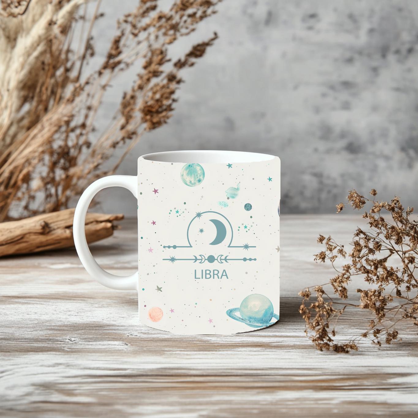 Perfect for the diplomatic and charming Libra in your life, this mug is an ideal way to enjoy their favorite beverage while embracing their astrological identity. It makes a thoughtful and personal gift for birthdays (September 23 - October 22), holidays, or any occasion for astrology enthusiasts. Available in both a convenient 11oz and a more generous 15oz size to suit all preferences.