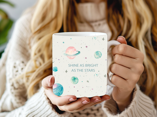 Embark on your adventures and illuminate your spirit with our "Shine As Bright As The Stars" Sagittarius Zodiac Coffee Mug! This enchanting mug features a whimsical design with pastel planets, twinkling stars, and delicate cosmic elements scattered across a soft, celestial background. On one side, it proudly displays the adventurous Sagittarius zodiac symbol and name, while the other side carries the inspiring message, "Shine As Bright As The Stars."
