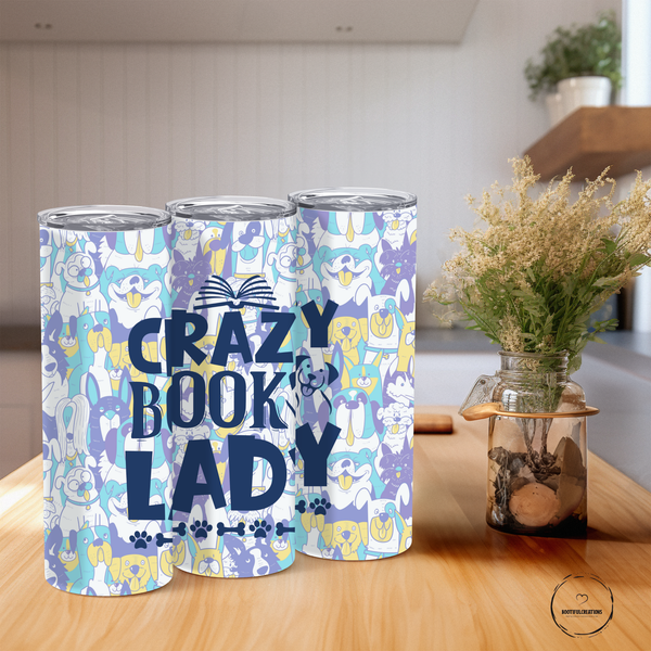 The Crazy Book Lady Tumbler is the ultimate accessory for book lovers! With its fun "Crazy Book Lady" design and cute dogs background, this tumbler is perfect for keeping your drinks hot for up to 6 hours and cold for up to 24 hours. Plus, it can be personalized with your name, making it a unique and practical gift for any book enthusiast.