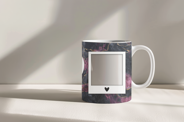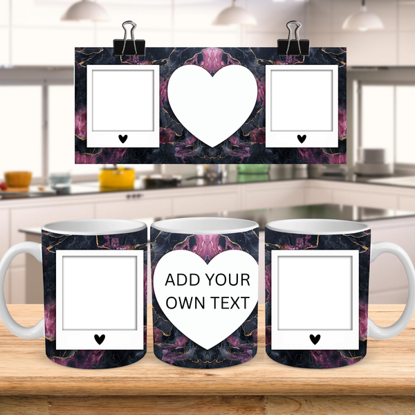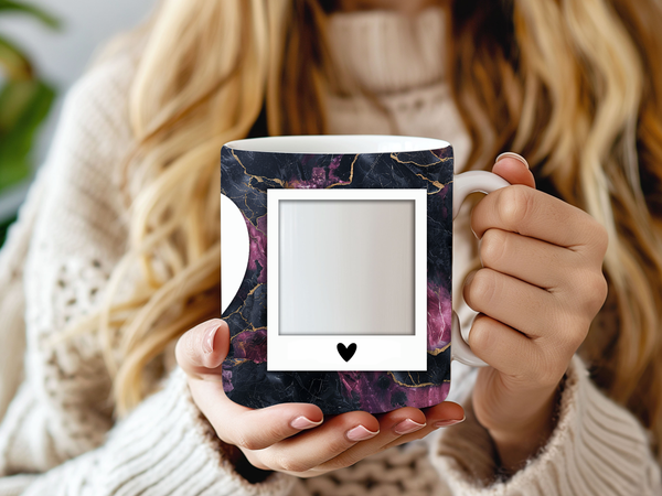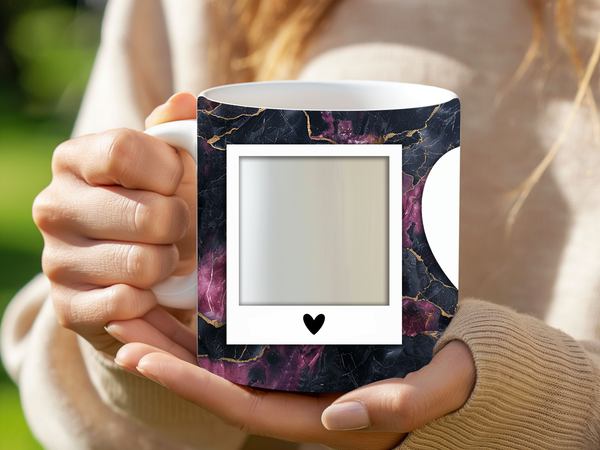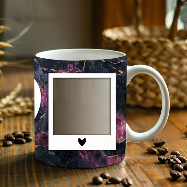 Create Your Own - Photo Frame & Text Mug with Purple Abstract Background