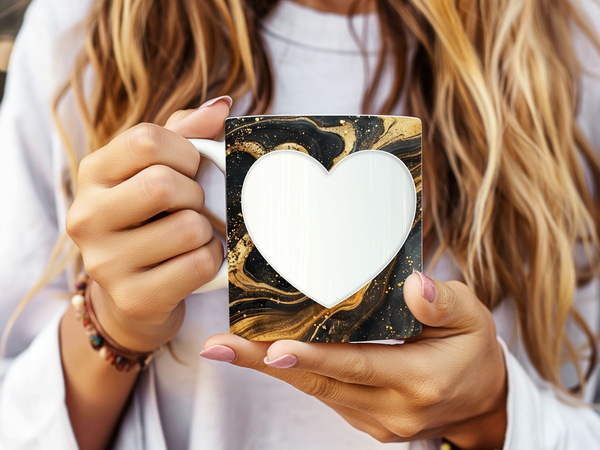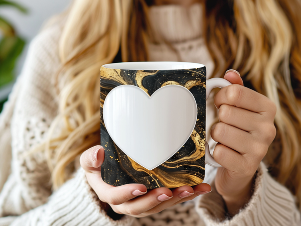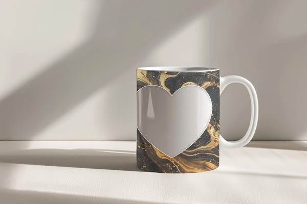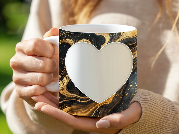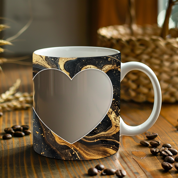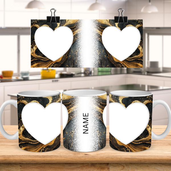 Customizable Photo & Name Coffee Mug - Luxurious Black & Gold Marble Design