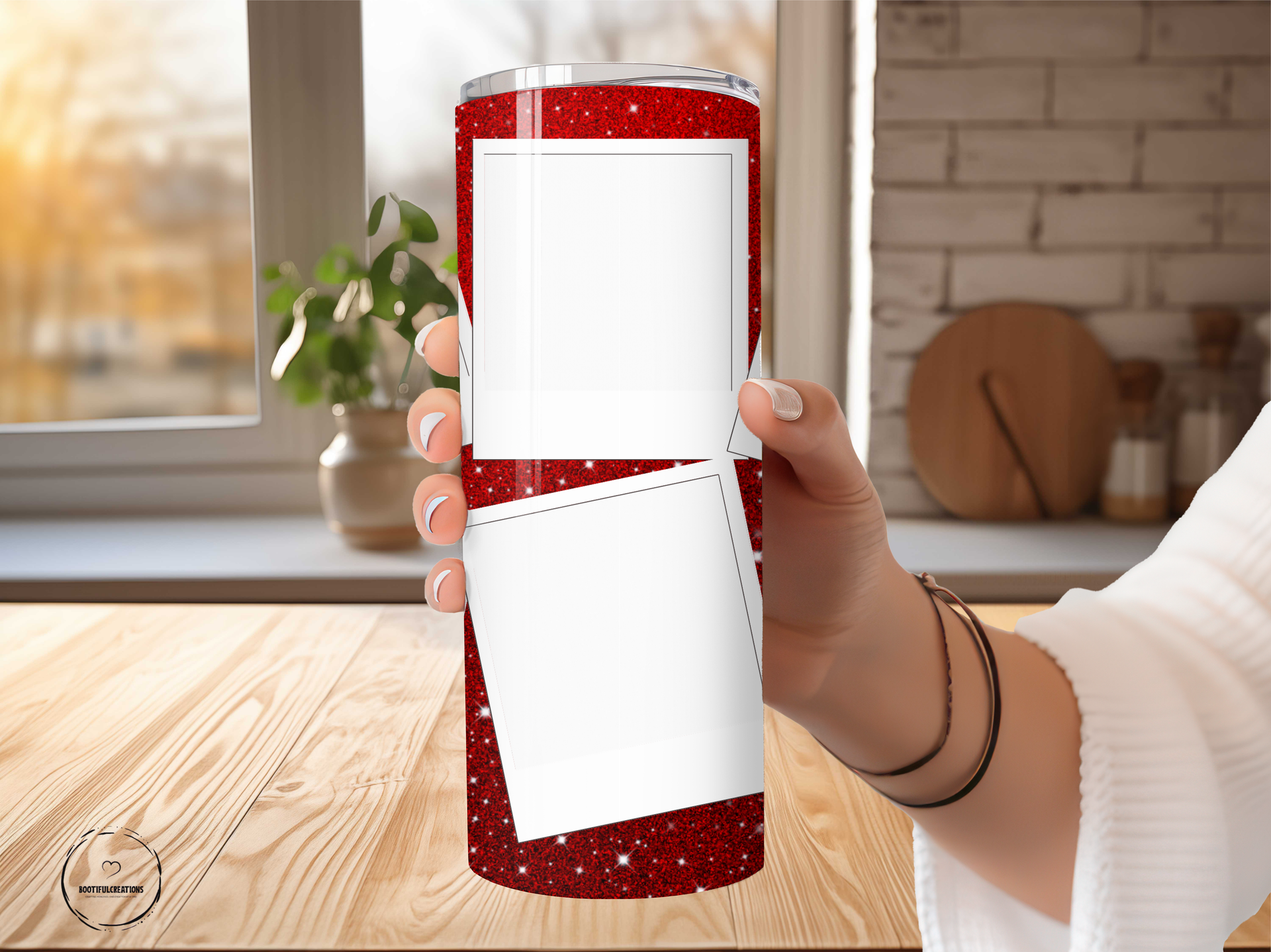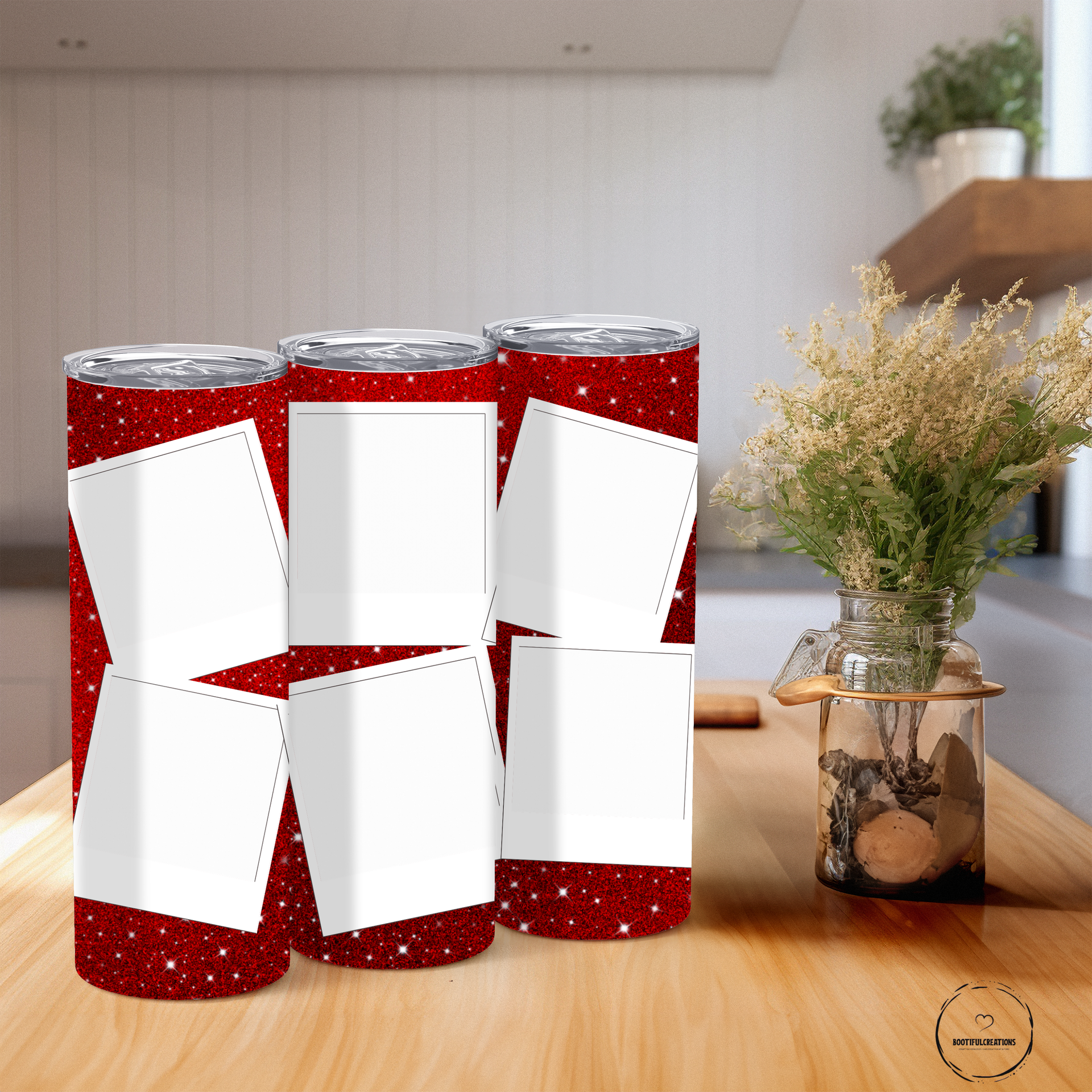 Add a personal touch to your daily routine with our Customizable Red Glitter Photo Tumbler! Adorned with multiple blank photo frames against a striking red glitter background, it's perfect for showcasing your favorite memories. Plus, it keeps drinks hot for up to 6 hours and cold for up to 24 hours. Personalize it with your name and make each sip even more special!