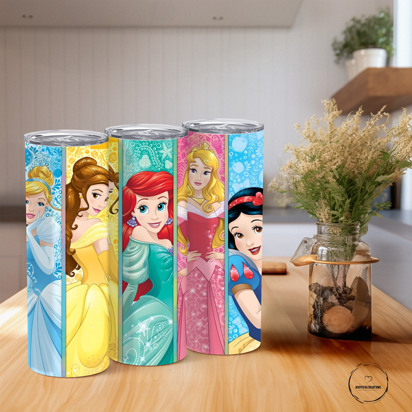 The Disney Princesses Tumbler keeps drinks hot for up to 6 hours and cold for up to 24 hours with its insulated design. Featuring Ariel, Cinderella, Belle, Snow White, and Aurora, this tumbler can also be personalized with a name for a customized touch. Stay hydrated while channeling your inner princess!
