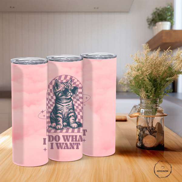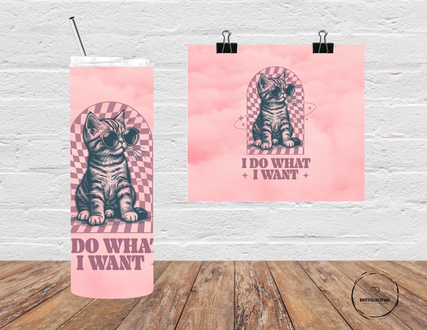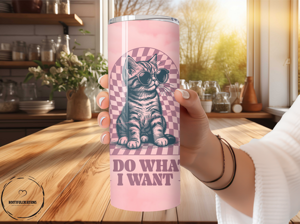 Unleash your inner rebel with our "Do What I Want" tumbler! Featuring a cool kitty wearing sunglasses, this tumbler keeps drinks hot for up to 6 hours and cold for up to 24 hours. Personalize with your name and never sacrifice style for function again!