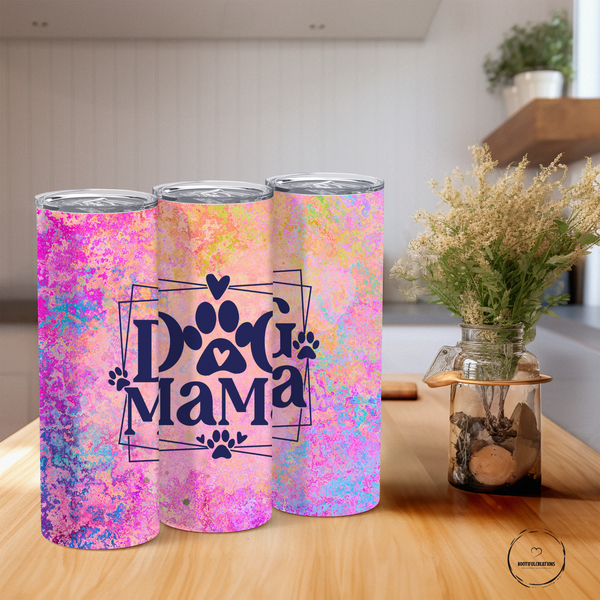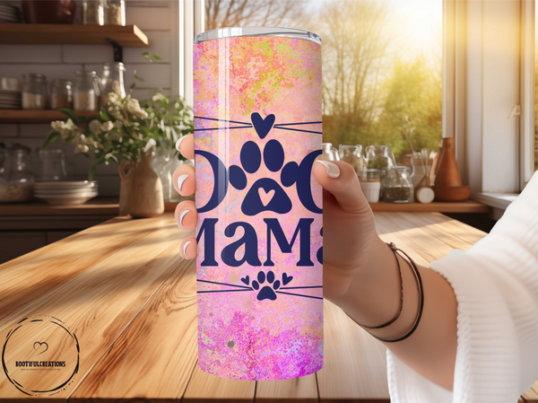 Stay hydrated and show off your love for your furry best friend with our Dog Mama Tumbler! Keep your drinks hot for up to 6 hours and cold for up to 24 hours. Personalize it with your name to make it even more special. Perfect for any dog mom on-the-go!