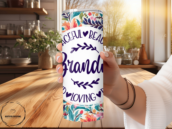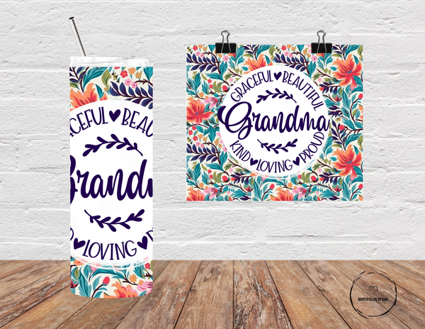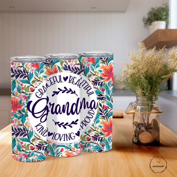 Elevate your grandma's daily routine with our Floral Grandma Characteristics Tumbler. This beautifully designed tumbler features a lovely floral print and the word "Grandma" surrounded by powerful words such as "Beautiful", "Kind", and "Loving". It can keep her drink hot for up to 6 hours and cold for up to 24 hours, making it perfect for any occasion. Personalize it with her name and show her how much she means to you!