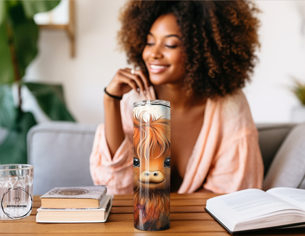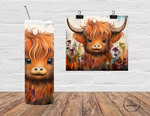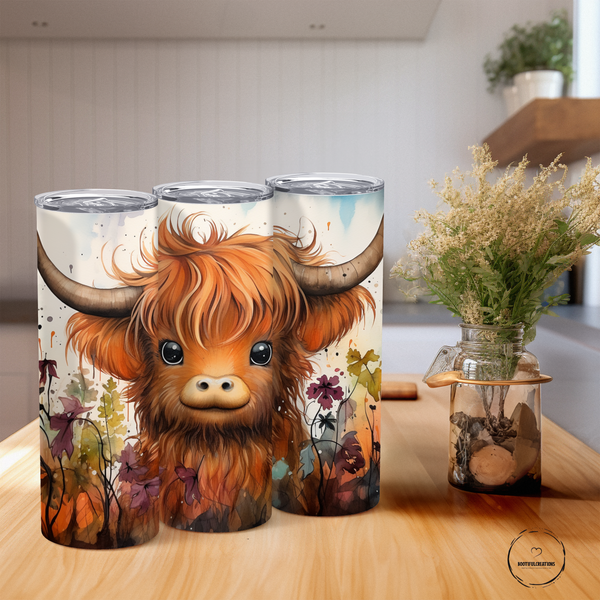 Elevate your beverage experience with our Floral Highland Cow Tumbler. This sleek tumbler keeps drinks hot for up to 6 hours and cold for up to 24 hours, while adding a touch of whimsy with its floral and highland cow design. Personalize with a name for the perfect gift.