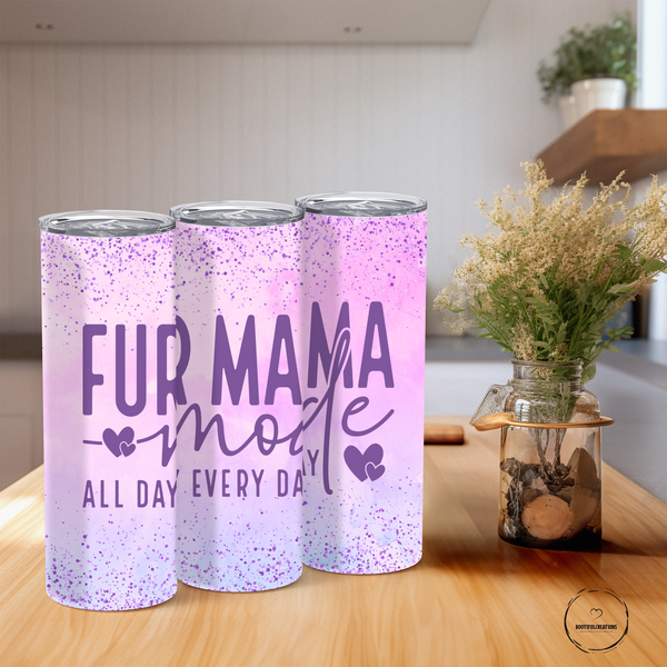 Keep your drink hot or cold for hours with the Fur Mama Tumbler! With its "Fur Mama Mode All Day Every Day" feature, you can show off your love for your fur babies. Personalize it with your name for that extra special touch. Perfect for busy pet parents on the go!
