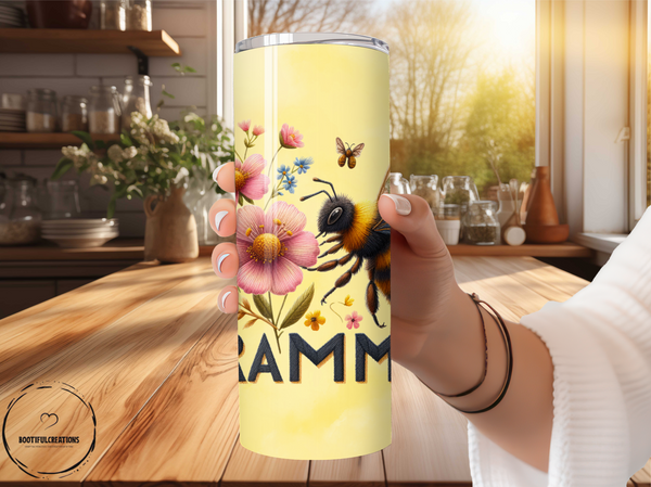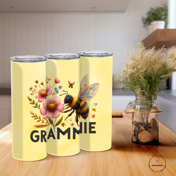 Stay hydrated with the Grammie Tumbler! Featuring a charming bumblebee and floral design, this tumbler keeps drinks hot for up to 6 hours and cold for up to 24 hours. Personalize with a name for a unique touch. Perfect for the passionate "Grammie" in your life!