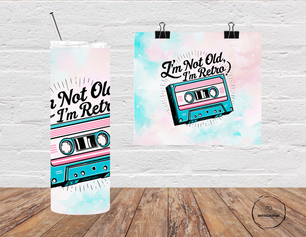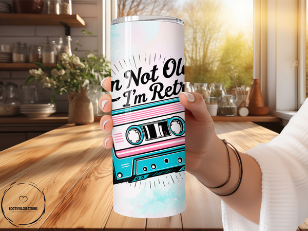 Stay cool and stylish with the "I'm Retro Tumbler" featuring a cassette tape design and the phrase "I'm Not Old, I'm Retro". This tumbler keeps your drinks hot for up to 6 hours and cold for up to 24 hours, perfect for any on-the-go adventure. Personalize it with your name and embrace your retro vibes!