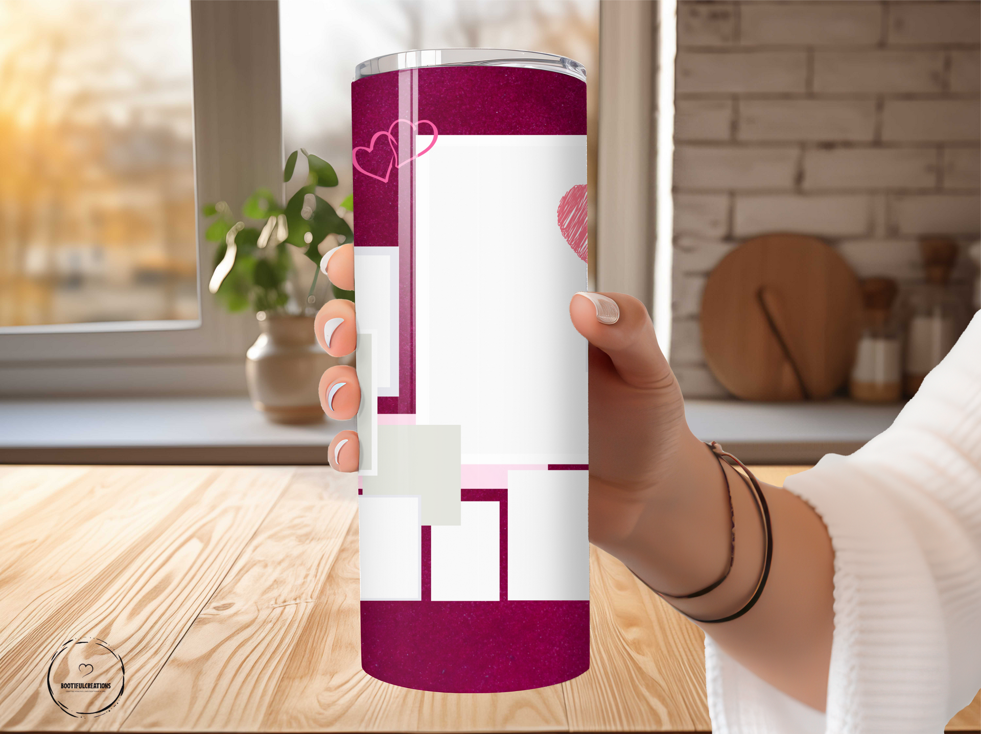 Capture your love and memories with our Love and Memories Photo Tumbler! Featuring a rich burgundy background and elegant white and pink designs, this tumbler includes multiple frames for your special photos. Keep your drinks hot for up to 6 hours and cold for up to 24 hours. Personalize it with a name and cherish your moments forever!
