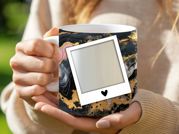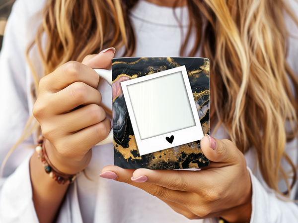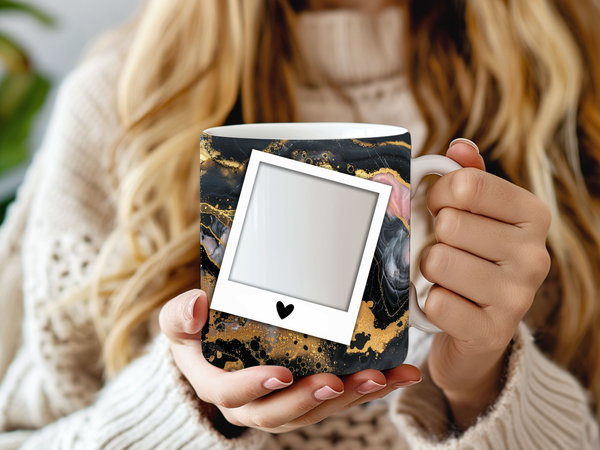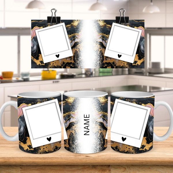 Personalized Polaroid Photo Mug with Custom Name - Artistic Marble Cup