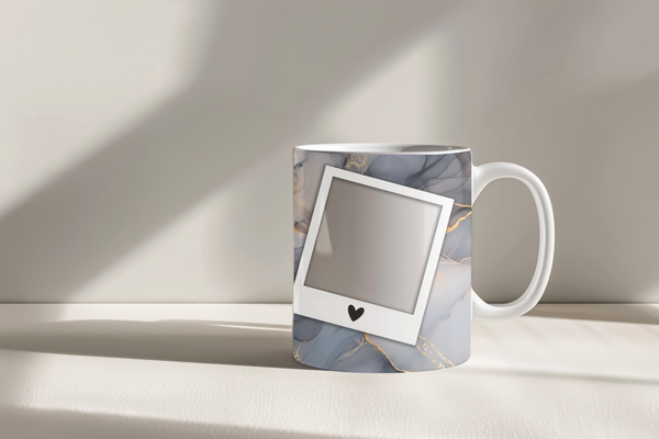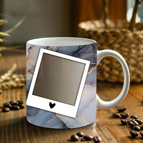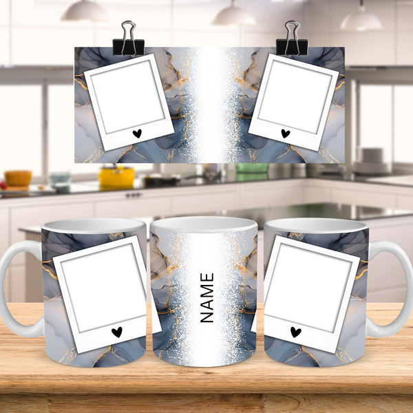 Personalized Polaroid Photo Mug with Custom Name - Chic Abstract Sparkle Cup