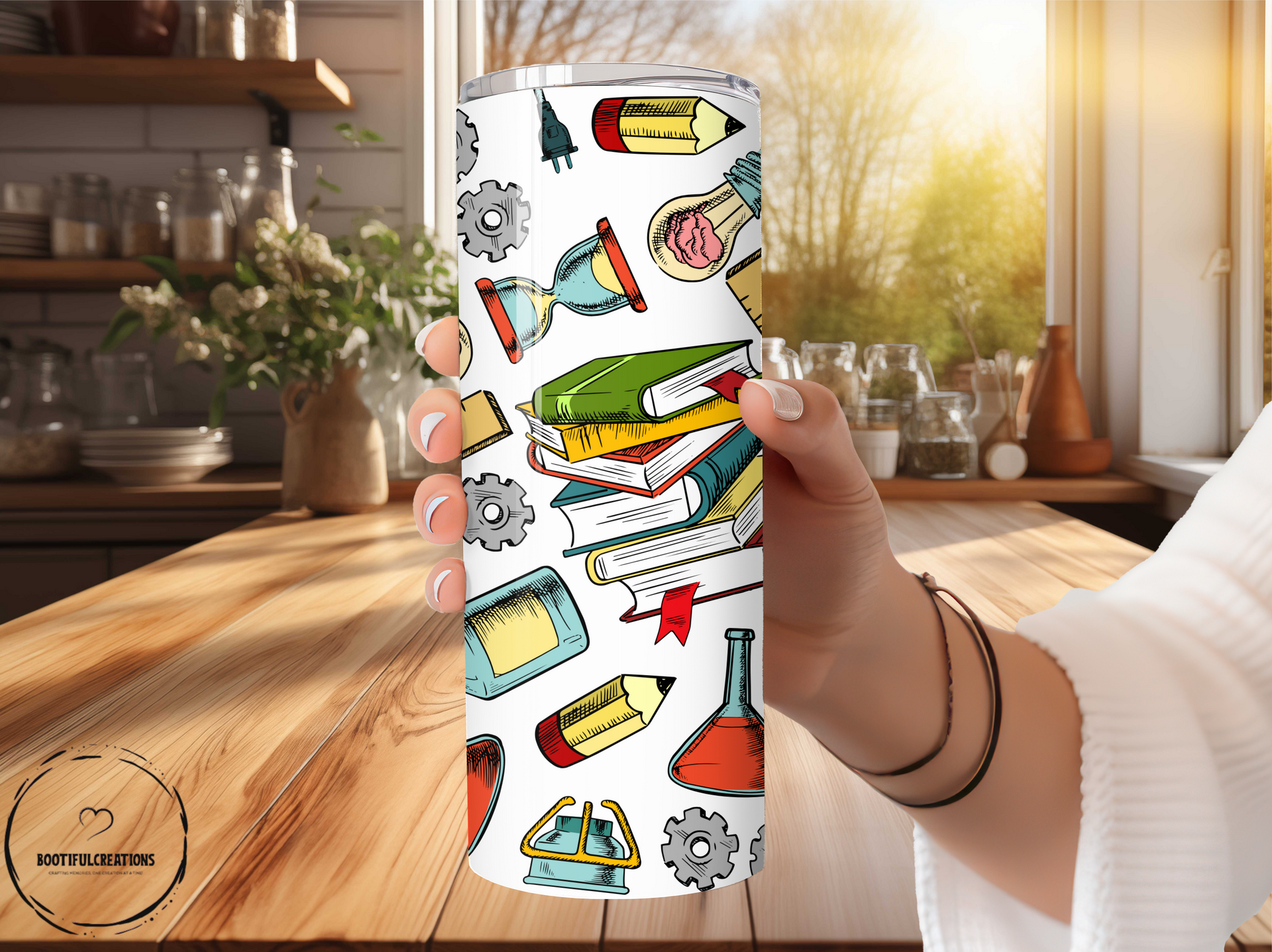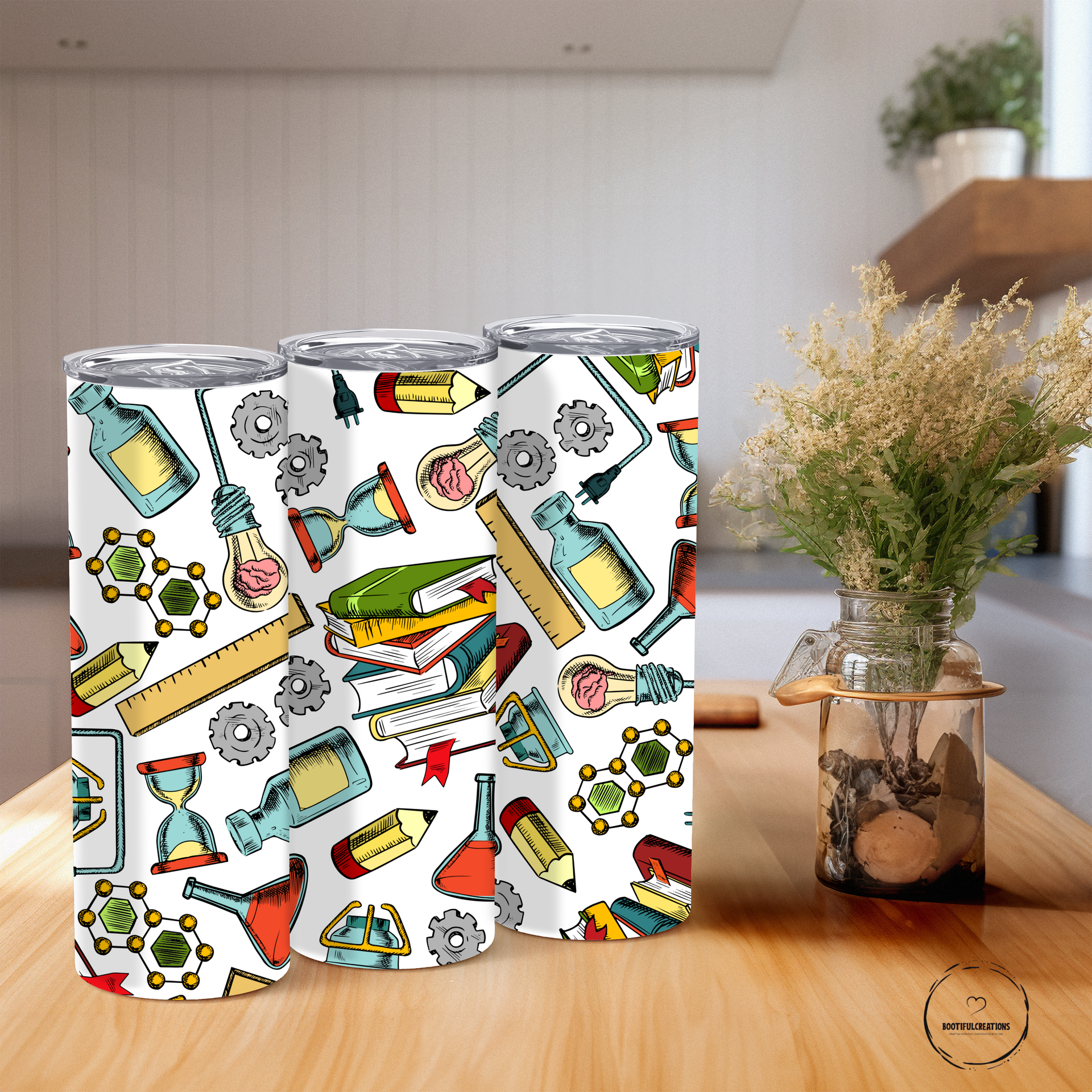 Upgrade your everyday routine with the Science & Education Enthusiast Tumbler. Stay hydrated while showcasing your passion for learning with its colorful illustrations. Keep your drinks hot for up to 6 hours or cold for up to 24 hours. Personalize it with your name for a unique touch. Experience the joy of learning in every sip!