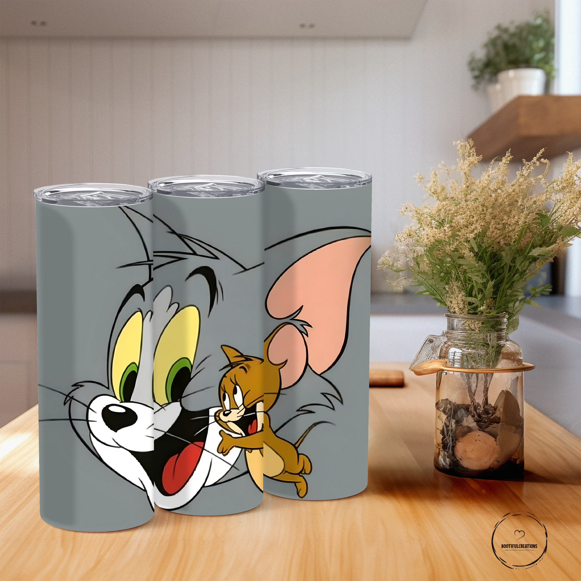 The Tom and Jerry Tumbler brings your favorite cartoon duo to life while keeping your drinks hot for 6 hours or cold for 24 hours. Personalize it with a name for a unique touch! Stay hydrated in style and relive the nostalgia with every sip.