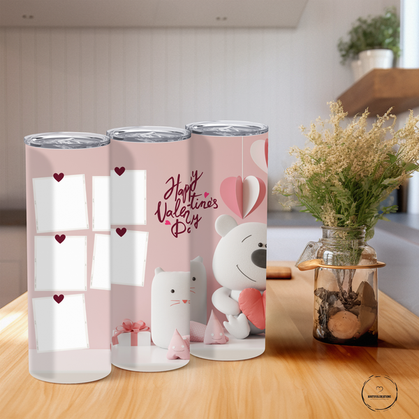 Celebrate Valentine's Day with our Love Bear and Cat Photo Tumbler! Adorable design with personalized photo spaces to show off your love. Keeps drinks hot for up to 6 hours and cold for up to 24 hours. Perfect for a romantic picnic or cozy night in. Personalize with a name for an extra special touch!