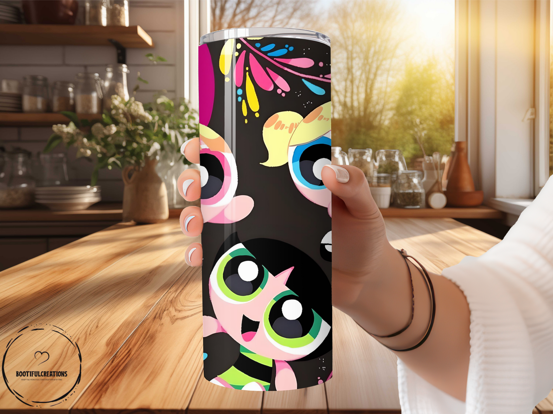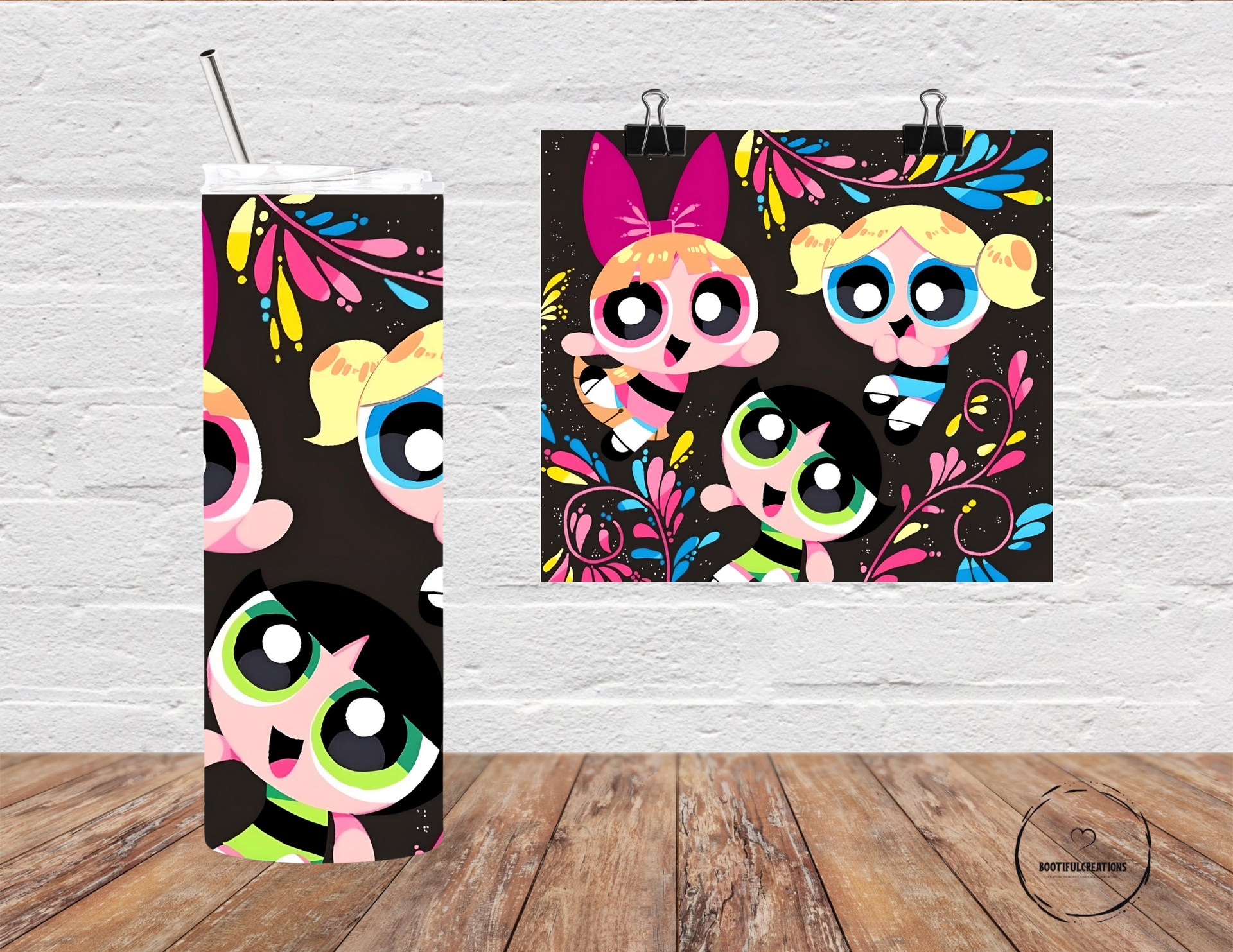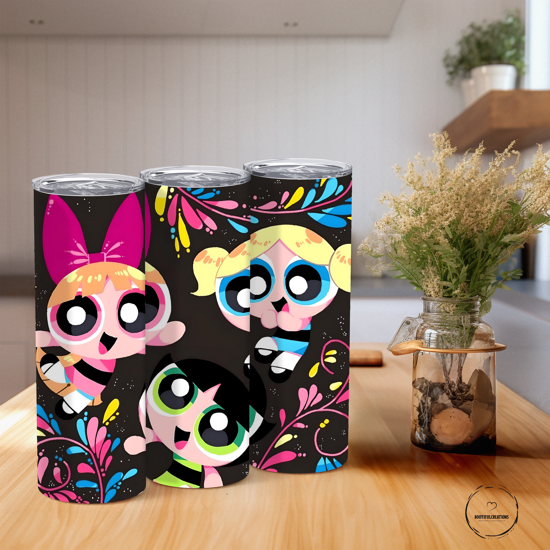 Stay energized and hydrated with the Vibrant Powerpuff Girls Tumbler! This tumbler can keep your drinks hot for up to 6 hours and cold for up to 24 hours. It features the beloved Powerpuff Girls and can even be personalized with a name. The perfect on-the-go accessory for any fan!