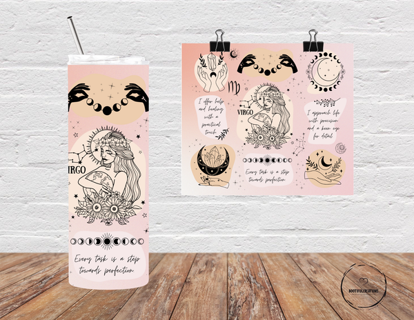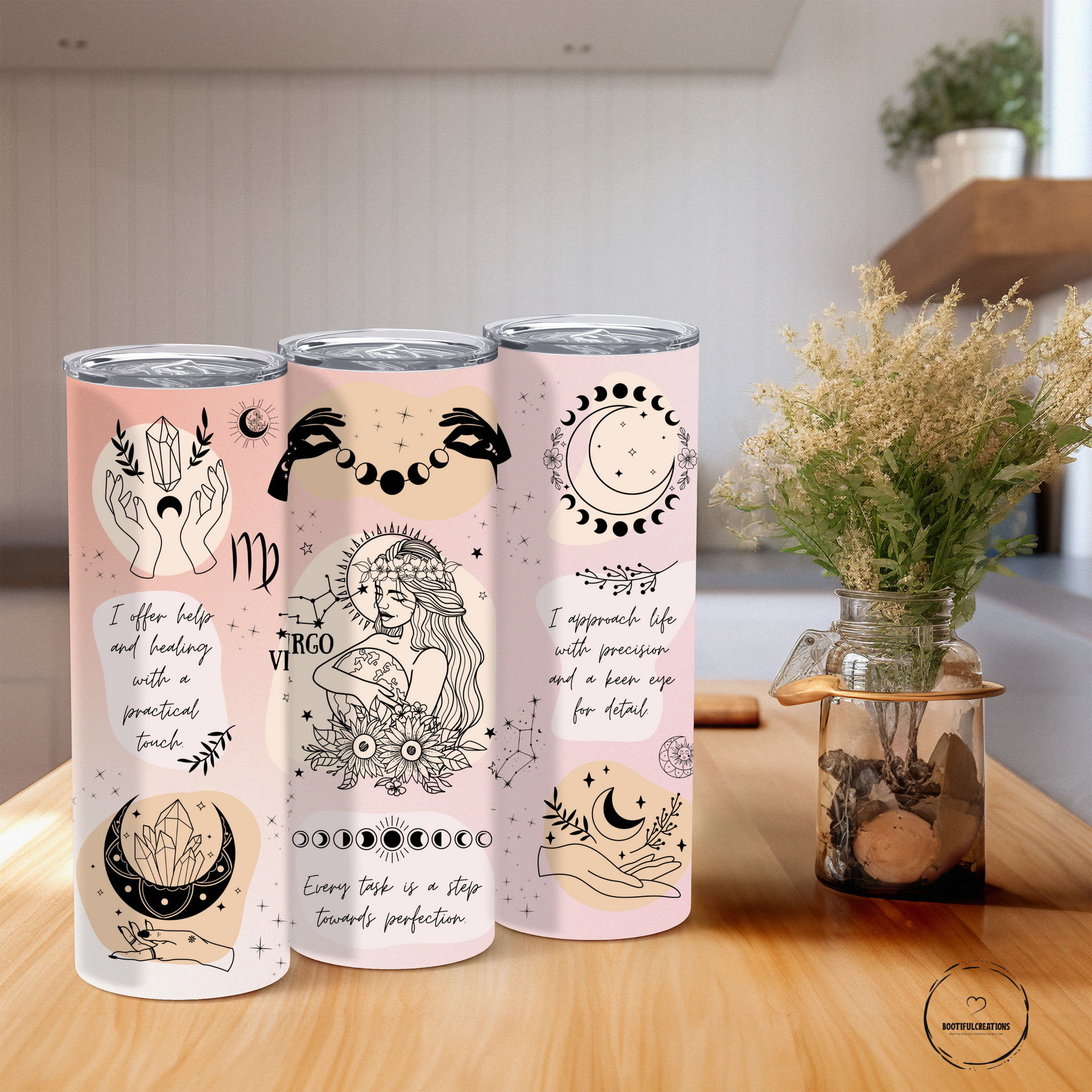 Stay hydrated in style with our Virgo Zodiac Sign Tumbler! This tumbler features the unique Virgo zodiac sign and can keep your drinks hot for up to 6 hours and cold for up to 24 hours. Personalize it with a name for the perfect gift. Embrace your Virgo energy with every sip!