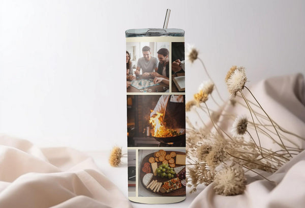 Showcase your memories with our Abstract Modern Art Photo Tumbler! Featuring a sleek geometric design, this tumbler holds 9 photos and keeps your drinks hot for 6 hours and cold for 24 hours. Personalize with a name for a unique touch. Keep your drinks and memories close at hand.