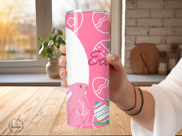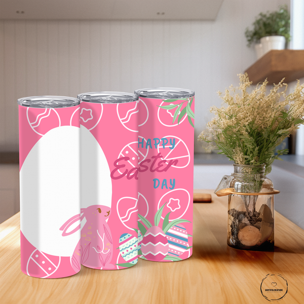 Easter Bunny and Eggs Pink Photo Tumbler