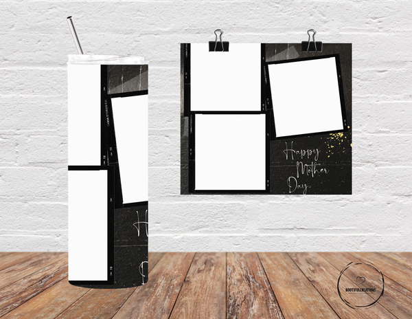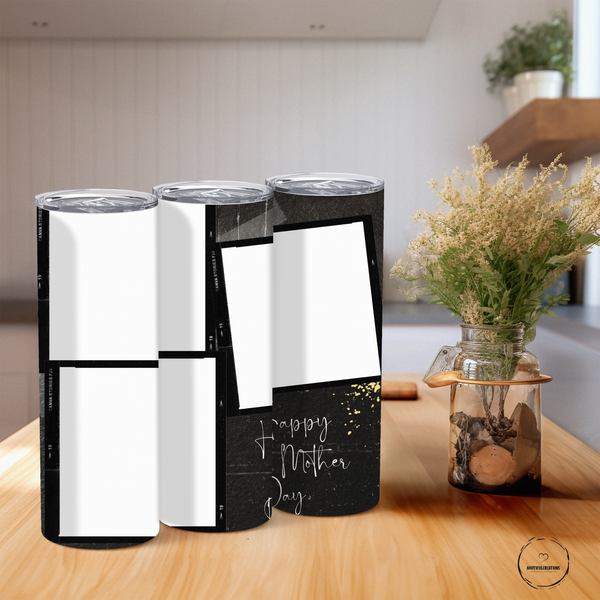 Capture the joy and love of Mother's Day with our Happy Mother's Day Photo Tumbler. Featuring a sleek design with film strip borders, it holds three personal photos alongside the elegant "Happy Mother's Day" message. Keep drinks hot for 6 hours or cold for 24, and make it truly special by adding a personalized name. Celebrate Mom in a unique and heartfelt way!