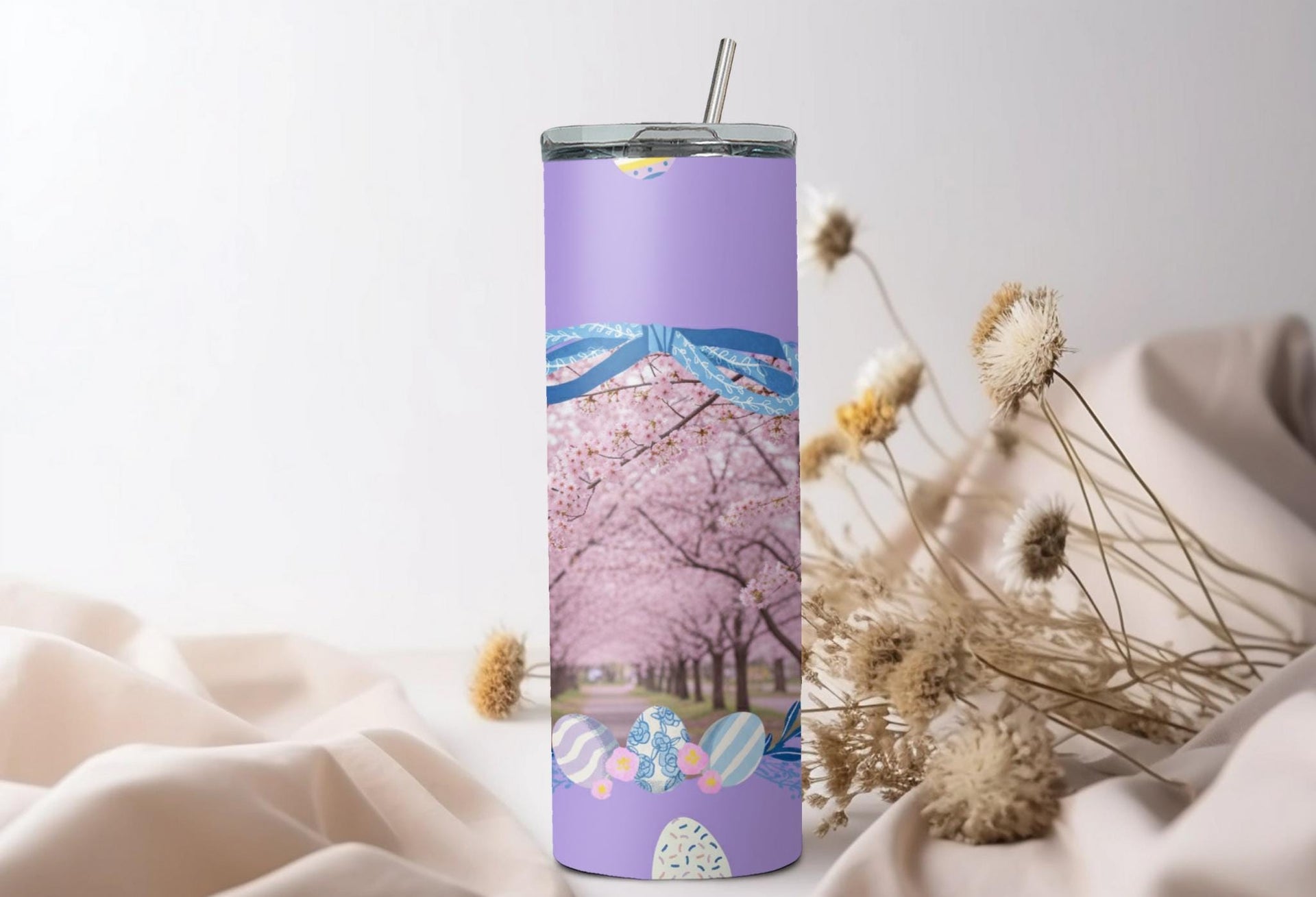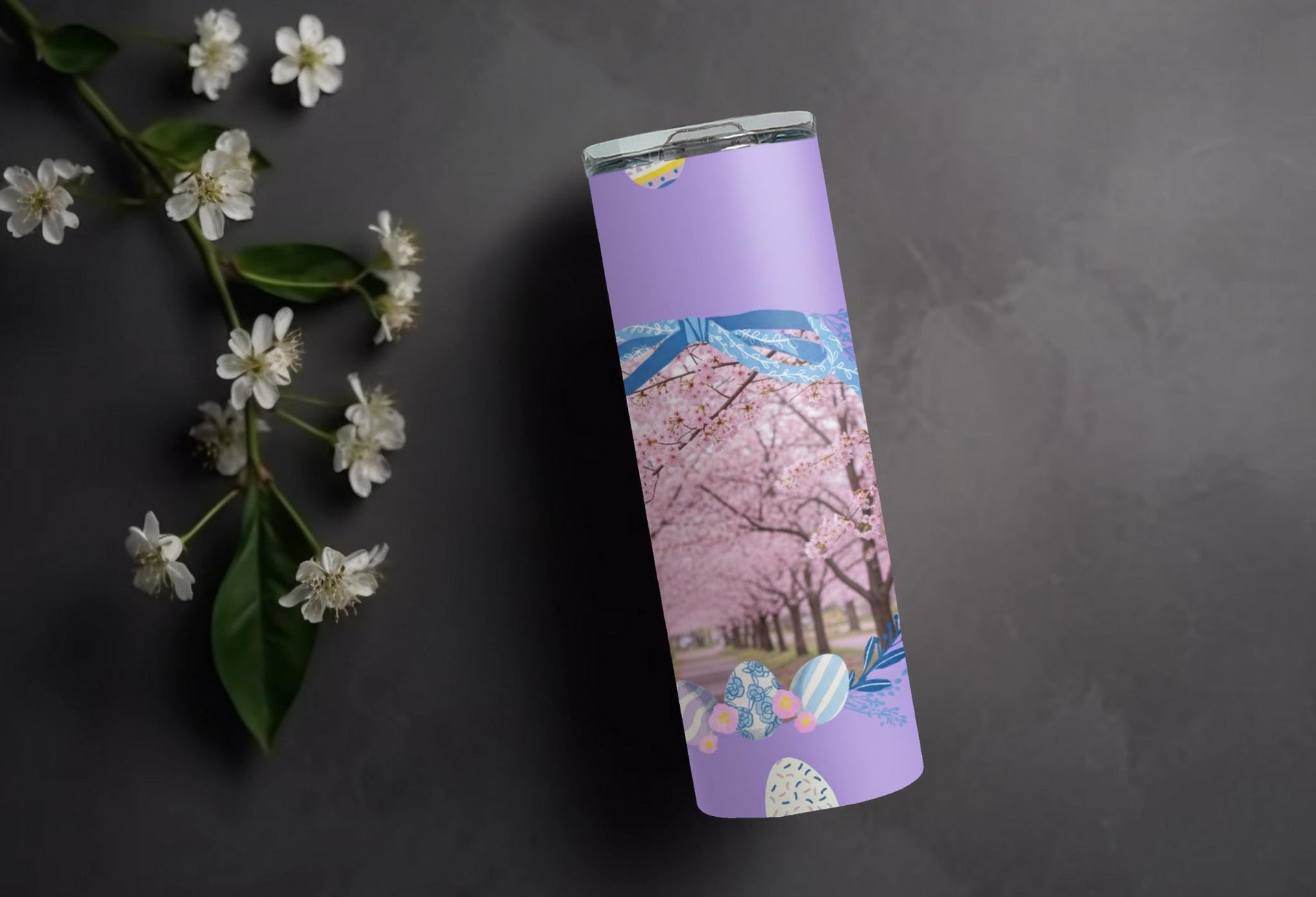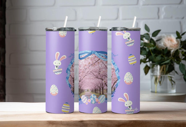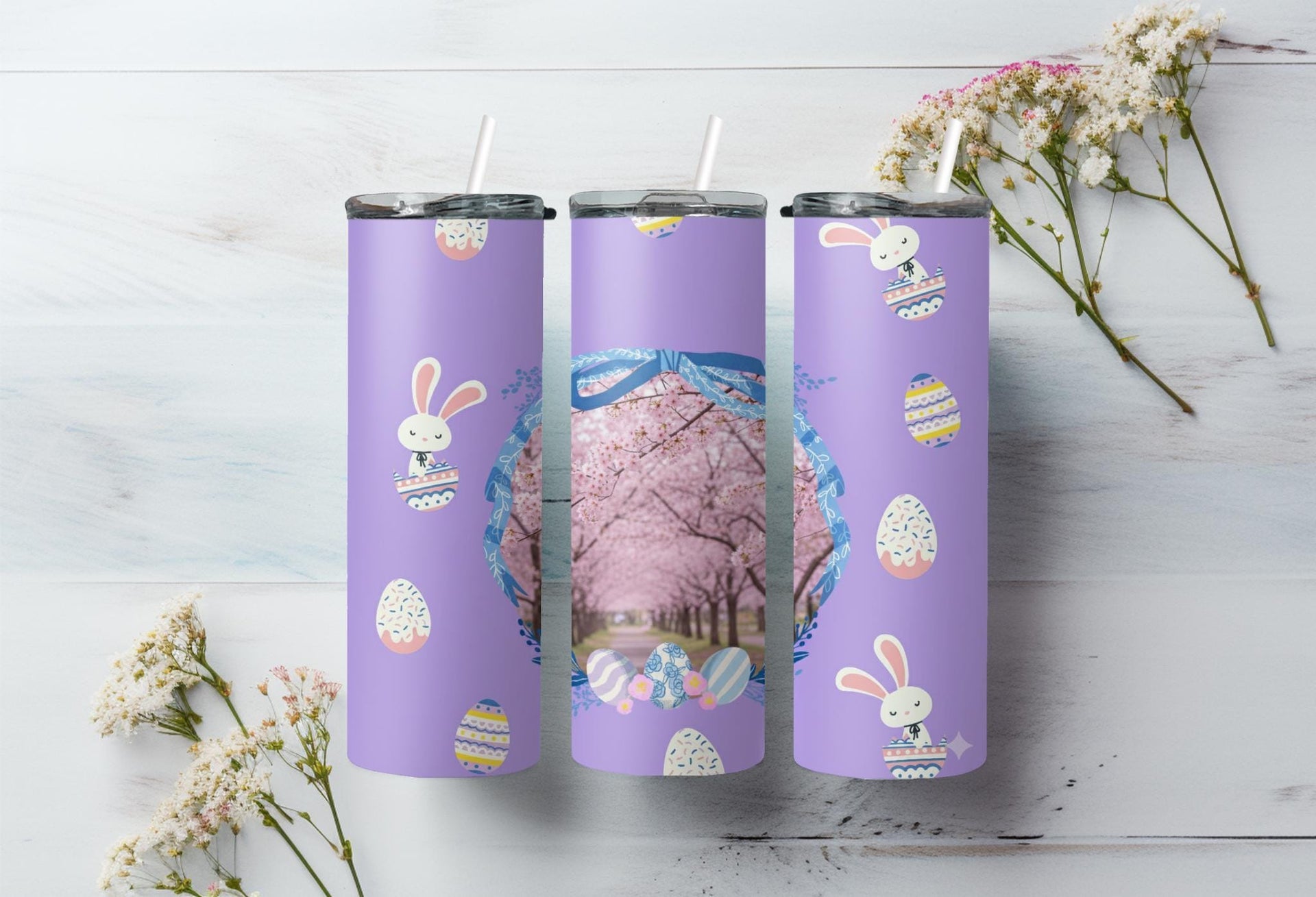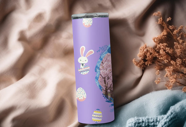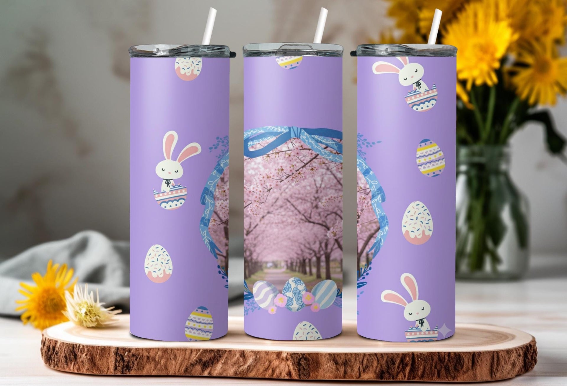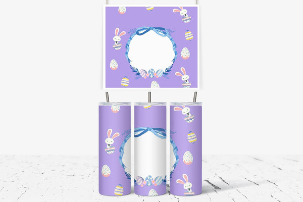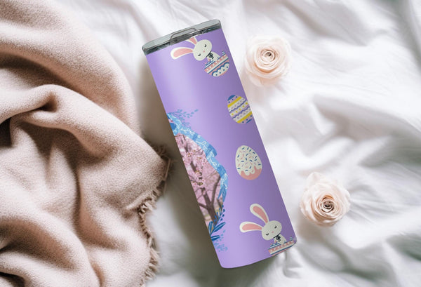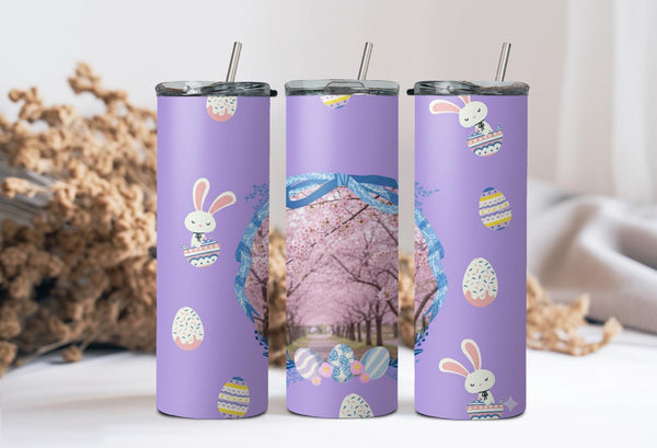 Celebrate Easter with our charming Easter Bunny and Egg Photo Tumbler! The soft lavender background, playful illustrations, and festive blue ribbon bow make it the perfect addition to your holiday table. Keep your drinks hot for up to 6 hours or cold for 24 hours. Personalize it with a name and showcase your favorite photo in the central white space. Make this Easter one to remember with our tumbler!