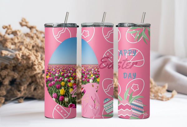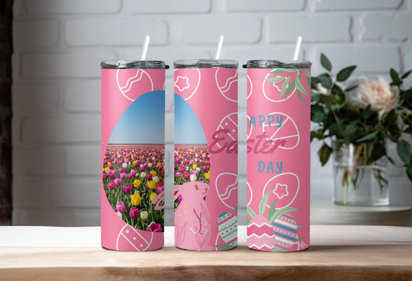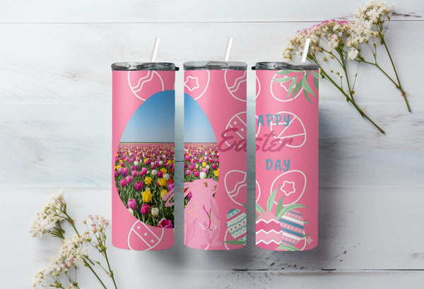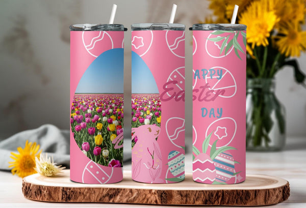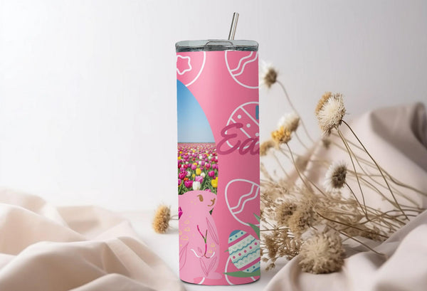 This Easter, keep your drinks hot for up to 6 hours or cold for up to 24 hours with our cute Pink Easter Bunny and Eggs Photo Tumbler! Adorned with floral patterns, it features a white space for your favorite photo and can even be personalized with a name. A perfect gift for anyone who loves Easter and wants to keep their drinks at the perfect temperature!