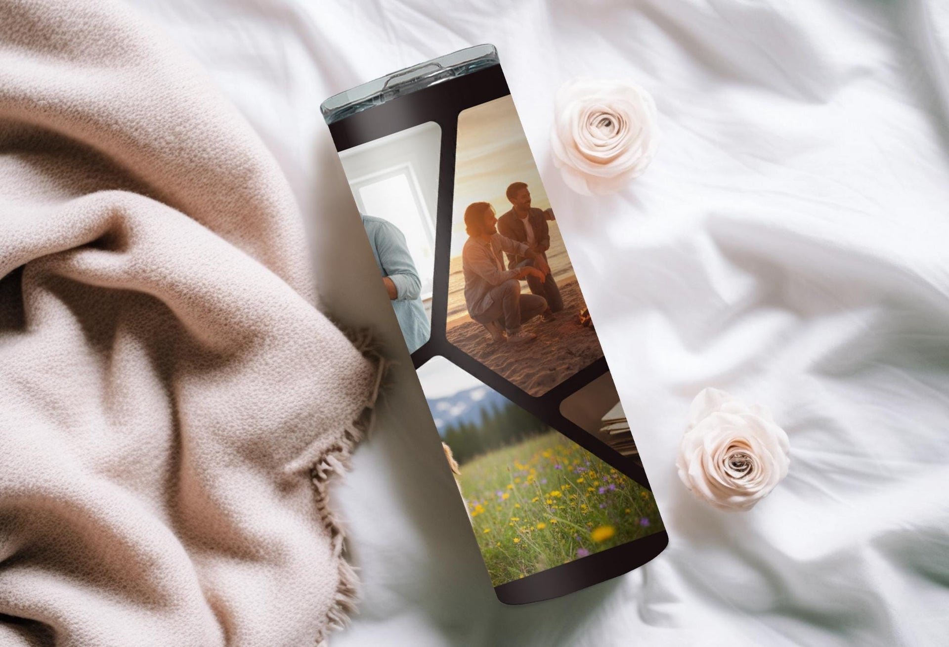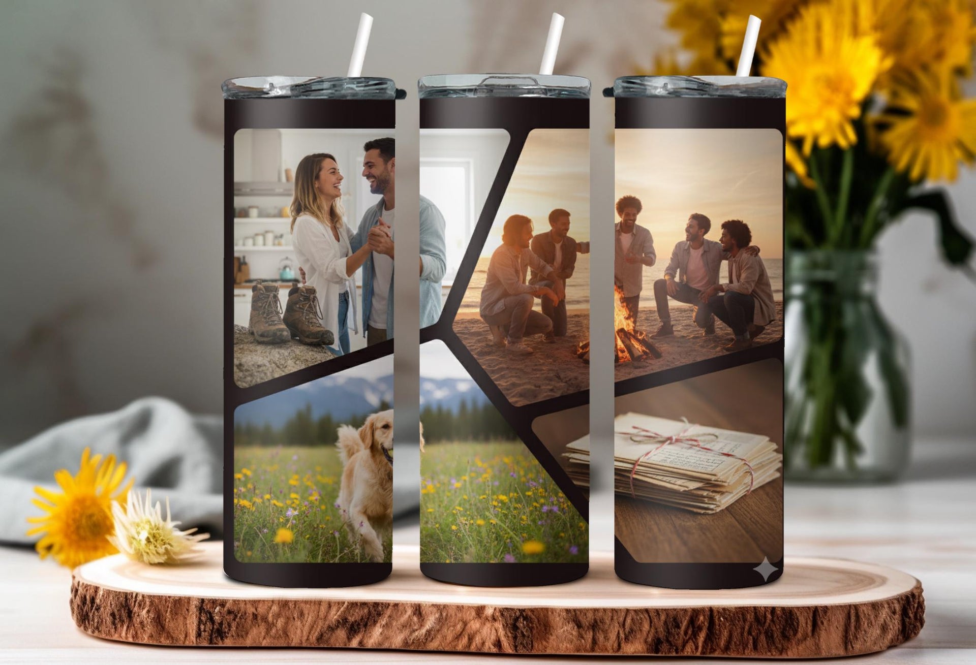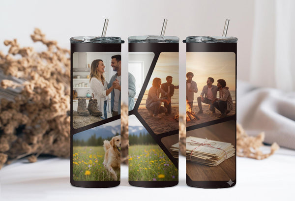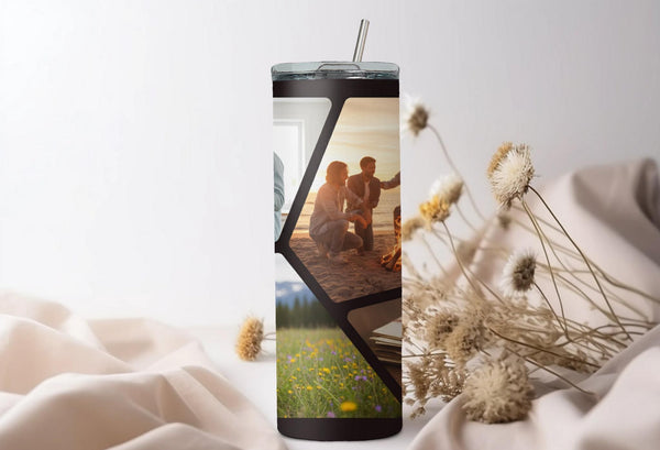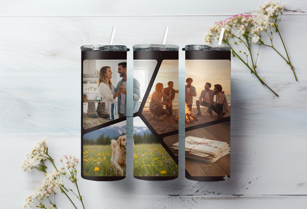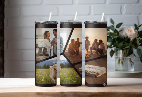 Stay hydrated and stylish with our Modern Geometric Pattern Photo Tumbler! Keep your hot drinks hot for up to 6 hours and your cold drinks cold for up to 24 hours. Personalize it with your name and showcase your favorite photos with the bold black lines and 4 polygon shapes. Quench your thirst and capture memories on the go!