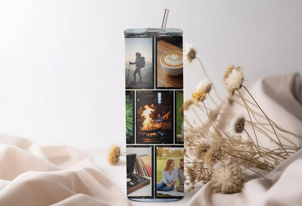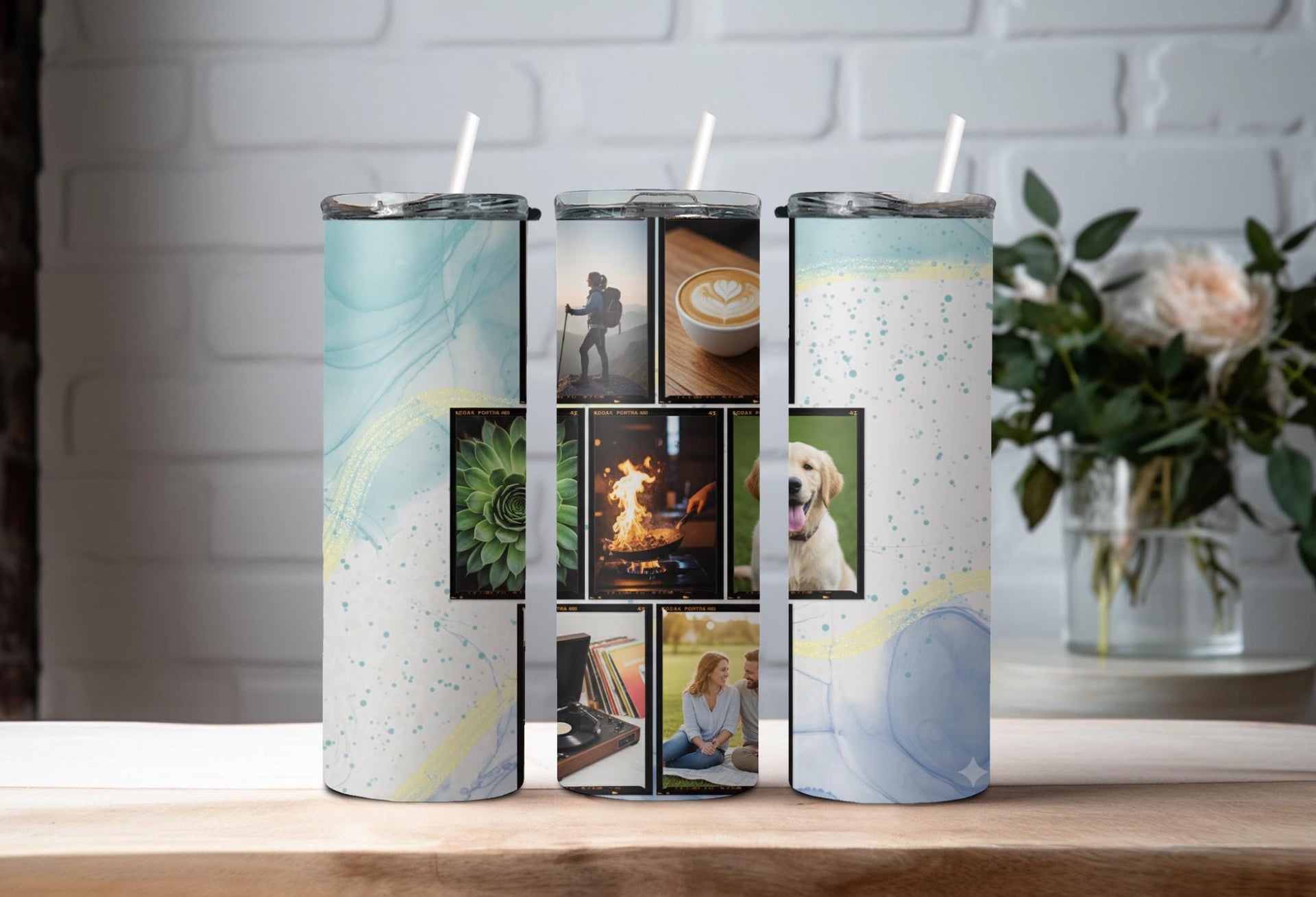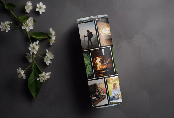 Capture your special moments in this Kodak Moment Customizable Photo Collage Tumbler! The vintage film strip design features 7 frames with "KODAK PORTAL 400" at the top, adding a nostalgic touch. Enjoy your favorite beverage hot for up to 6 hours or cold for up to 24 hours. Customize with a name for a personal touch. Cheers to creating lasting memories!