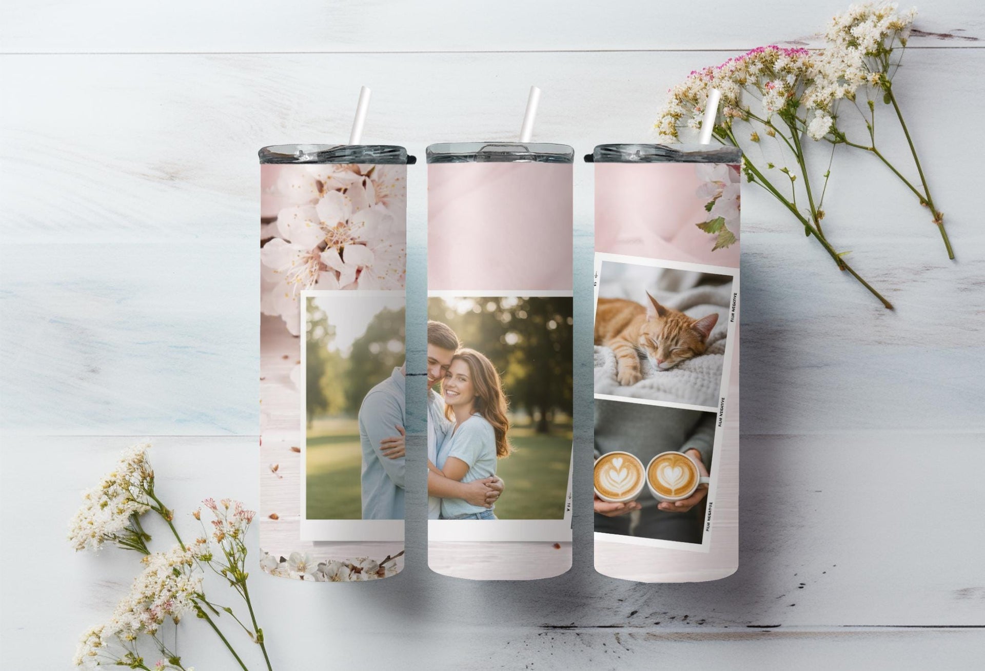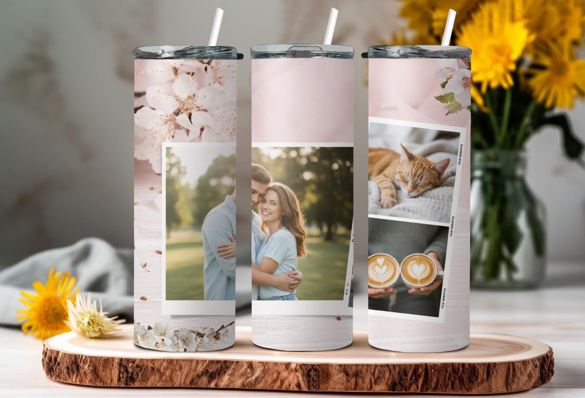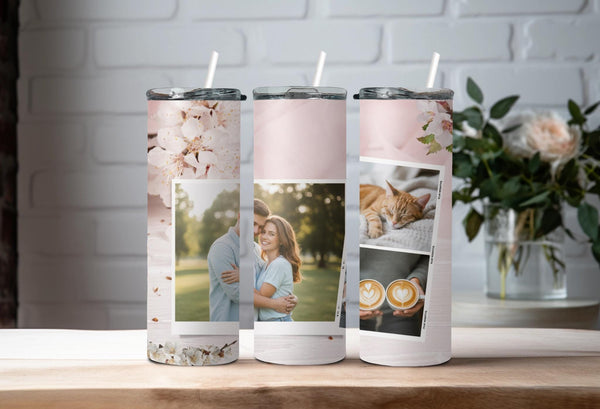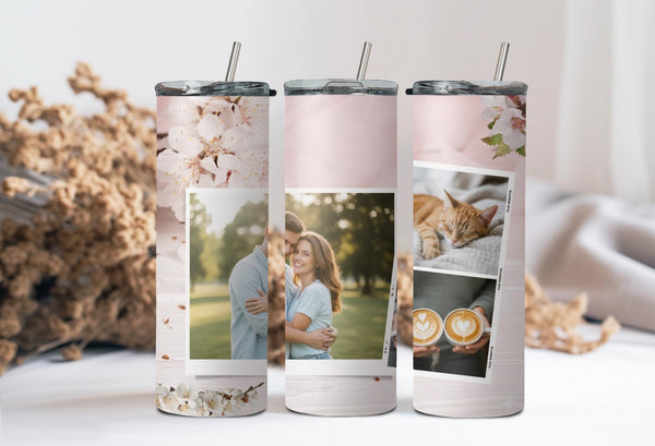 Add a personal and natural touch to your daily routine with our Cherry Blossom Photo Collage Tumbler! Keep your drinks hot for up to 6 hours or cold for up to 24 hours. Customize with your name and fill the blank photo spaces with your favorite memories. Delicate cherry blossoms create a beautiful backdrop for your photos.