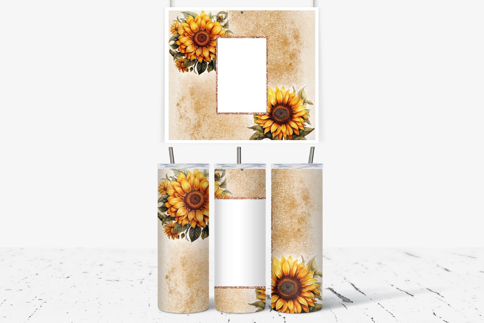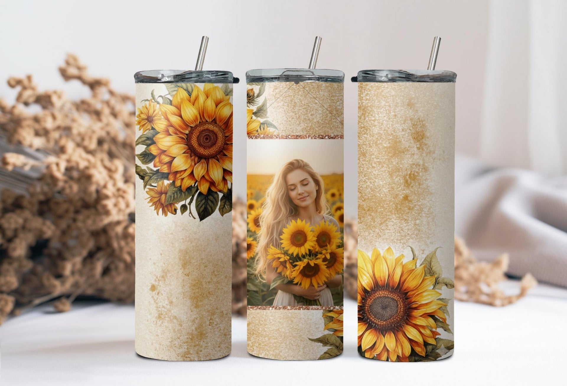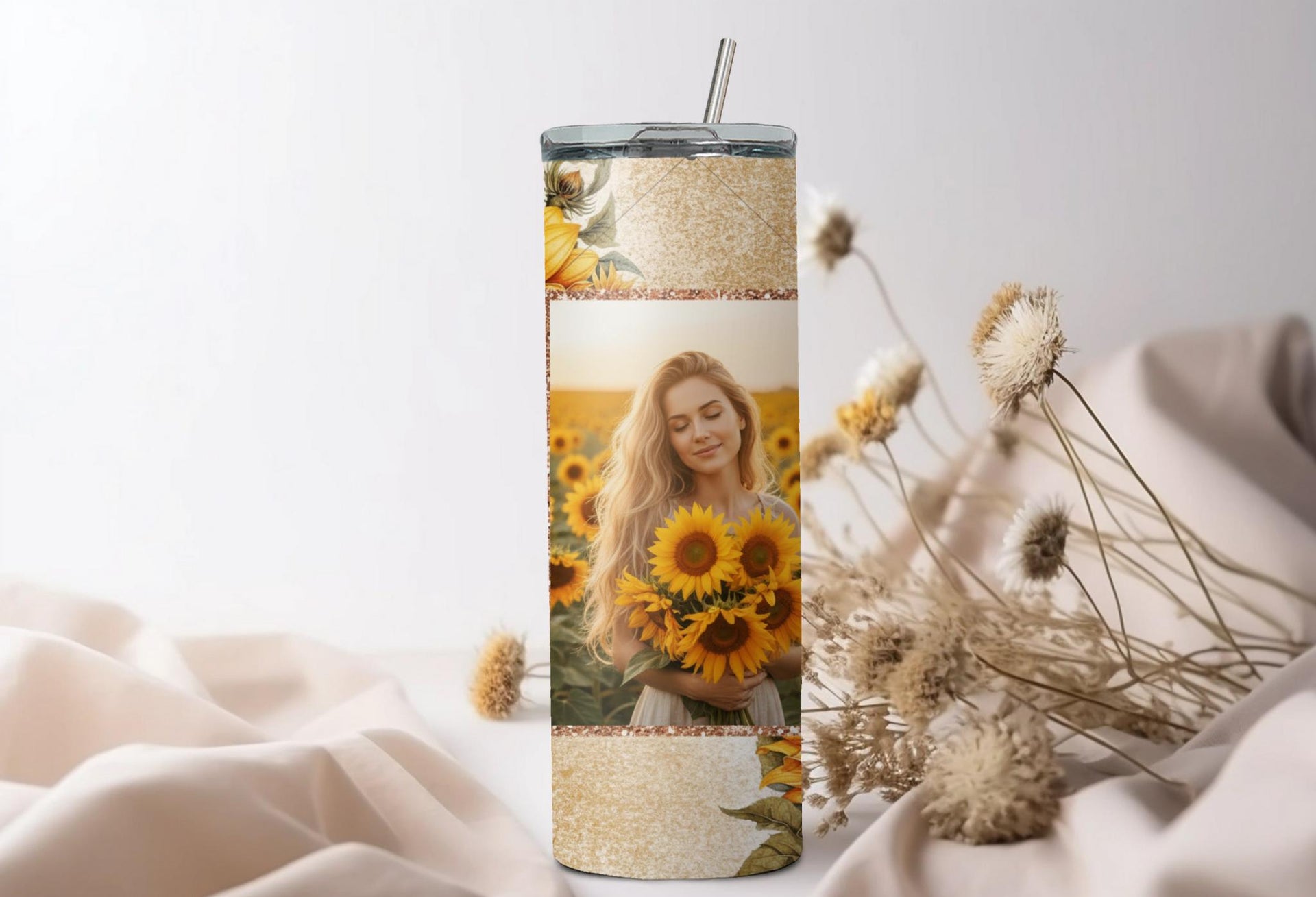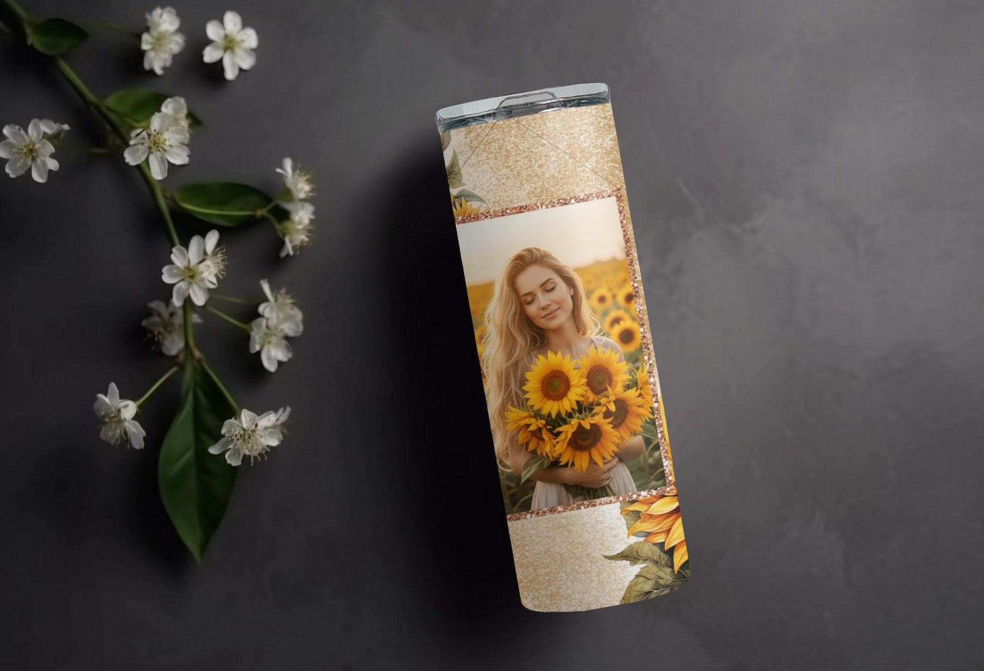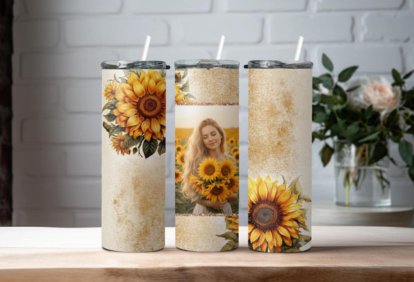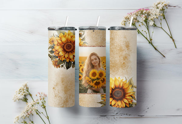 Indulge in the bright and cheerful design of our Sunflower Bliss Photo Tumbler! Keep your drinks hot for up to 6 hours or cold for up to 24 hours. Customize with your own photo and name to make it truly unique. Spread warmth and joy with every sip!