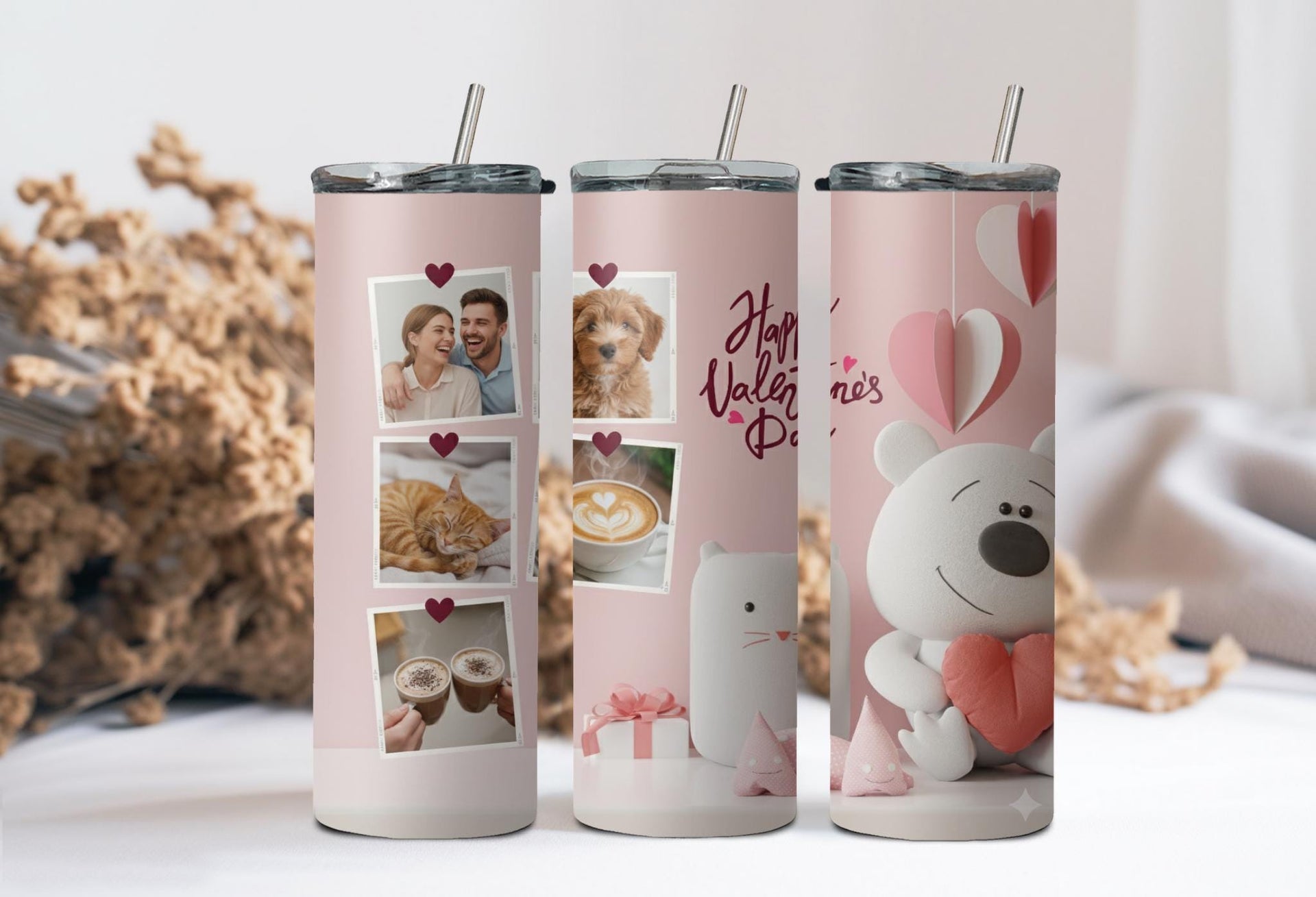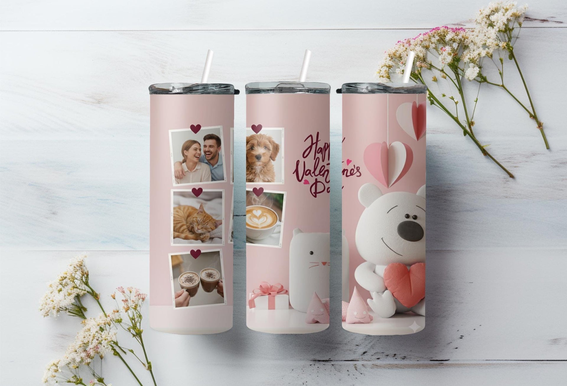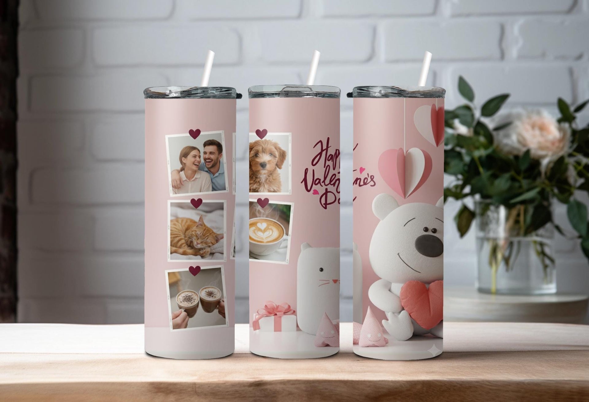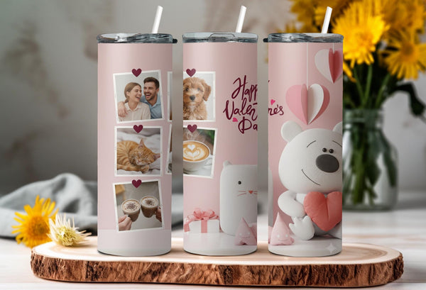 Celebrate Valentine's Day with our Love Bear and Cat Photo Tumbler! Adorable design with personalized photo spaces to show off your love. Keeps drinks hot for up to 6 hours and cold for up to 24 hours. Perfect for a romantic picnic or cozy night in. Personalize with a name for an extra special touch!