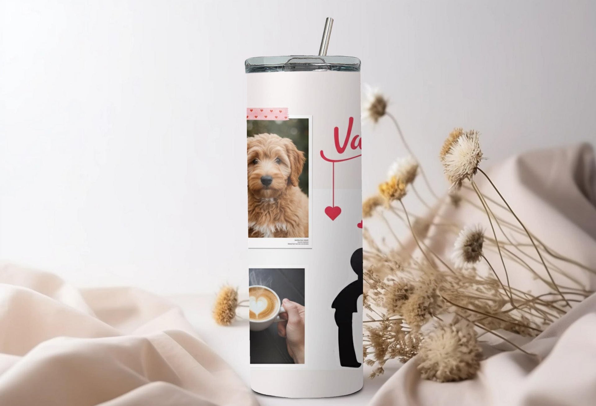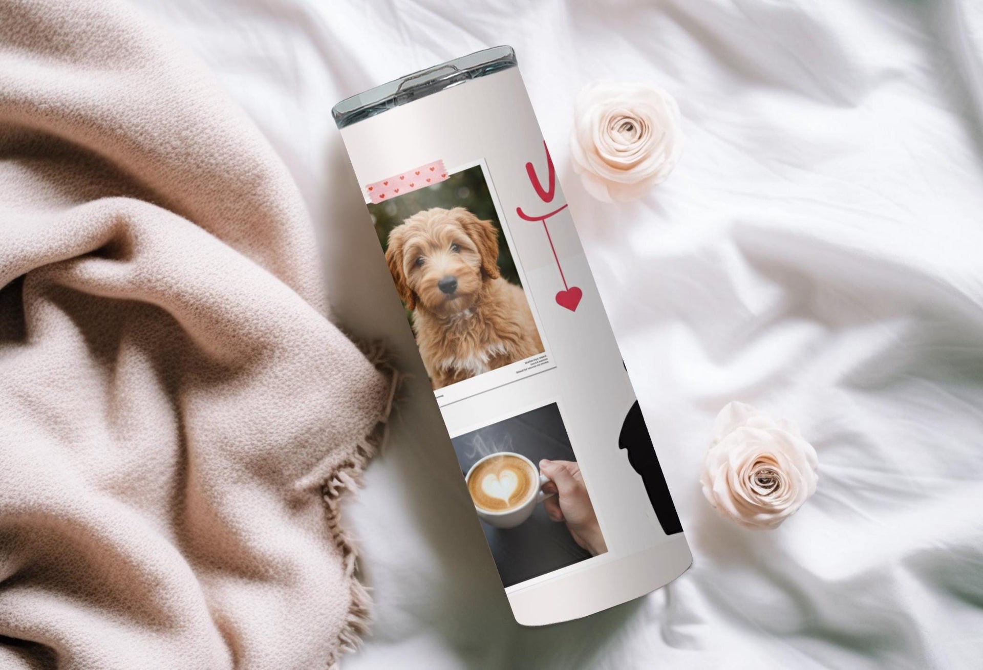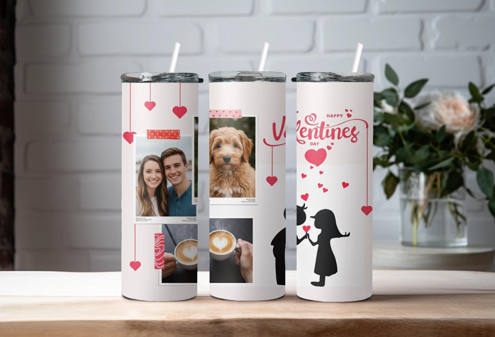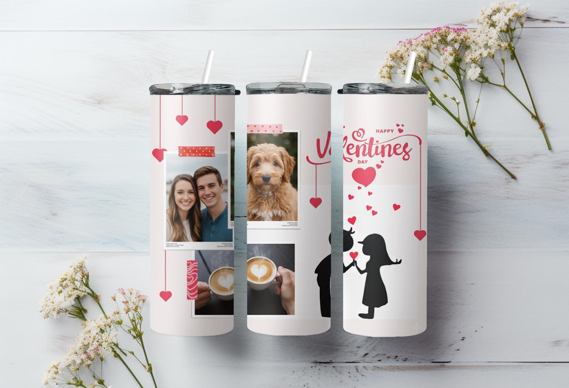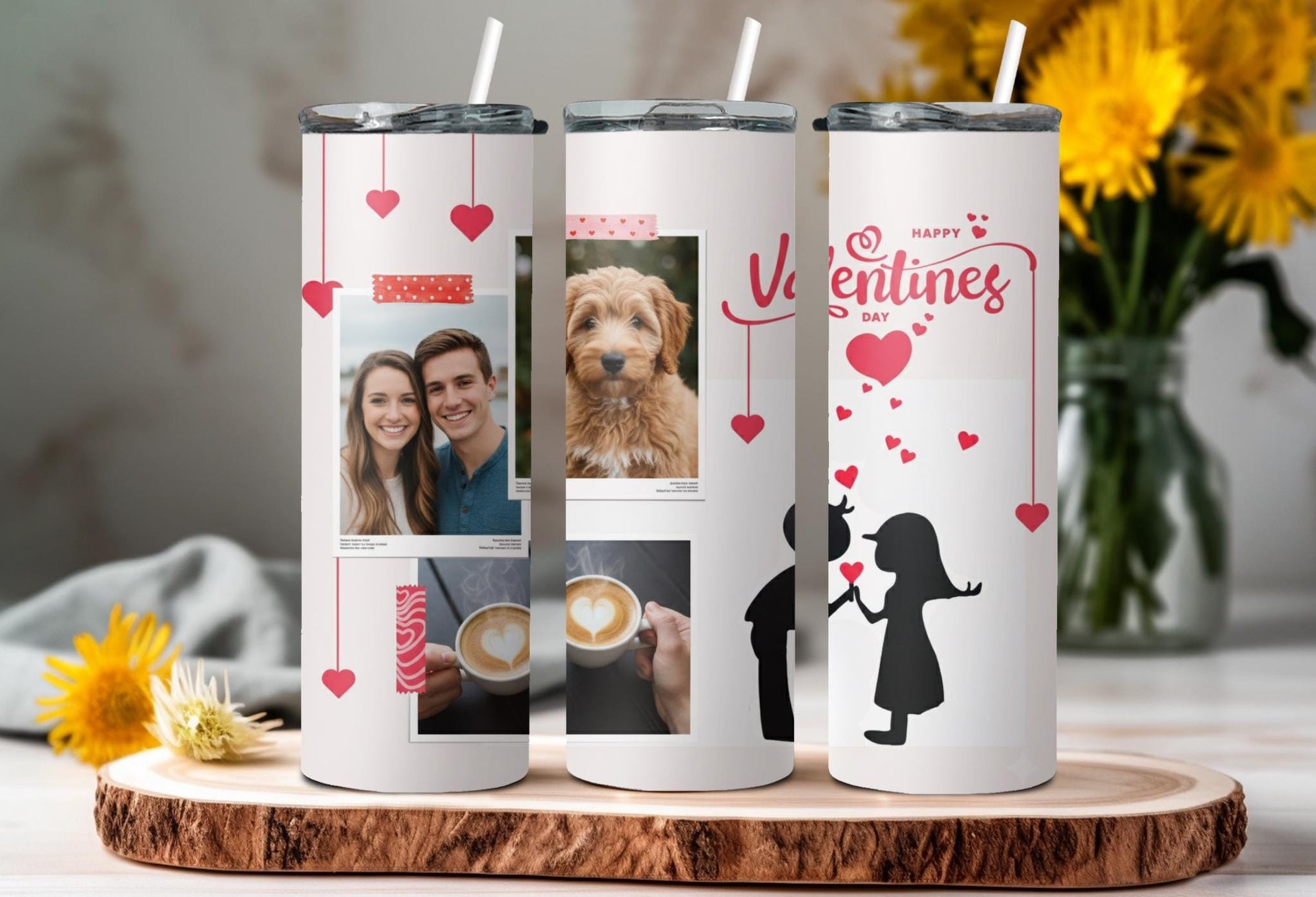 Looking for the perfect gift for your significant other this Valentine's Day? Look no further! Our Romantic Valentine's Day Photo Tumbler features a stunning design of a couple in love with customizable spaces for photos. Keep your drinks hot for up to 6 hours or cold for up to 24 hours. Add a personalized touch with your loved one's name. Order now and make this Valentine's Day truly special!