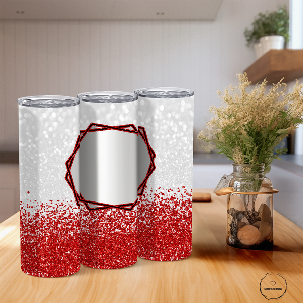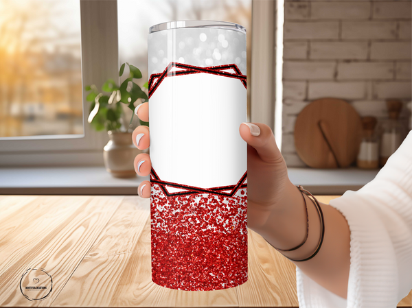 Stay hydrated in style with our Red Glitter Geometric Photo Tumbler! Featuring a stunning red glitter gradient and a customizable space for your favorite photo, this tumbler keeps your drink hot for 6 hours and cold for 24. Make it even more special by adding a personalized name.