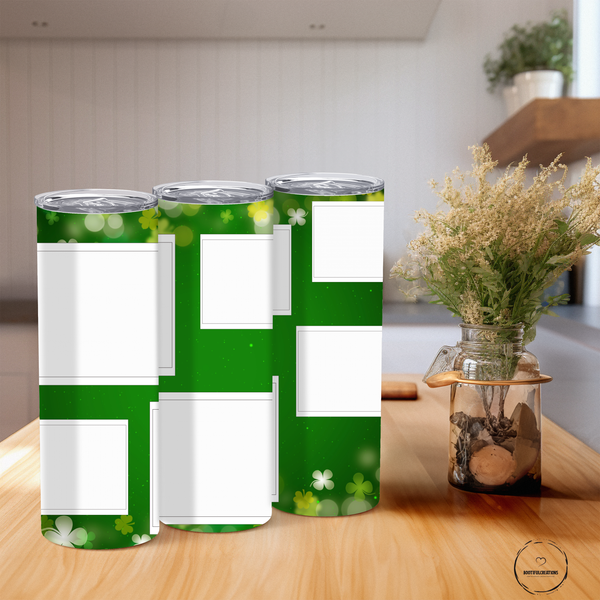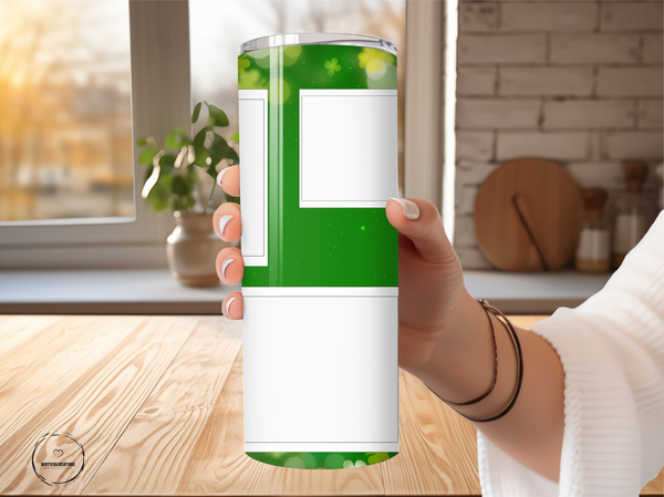 Add a touch of luck to your drinkware with our St. Patrick's Day Photo Tumbler! Featuring a festive green background with shamrocks and bokeh lights, personalize with a name and up to 6 of your favorite photos. Keeps drinks hot for 6 hours and cold for 24 hours. Cheers to the holiday!
