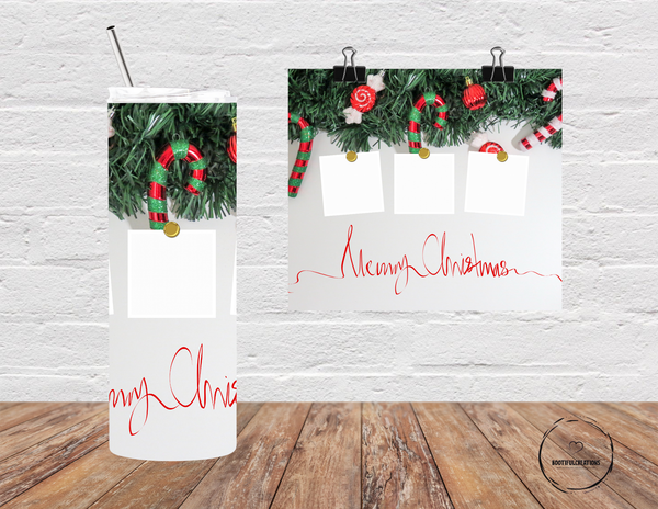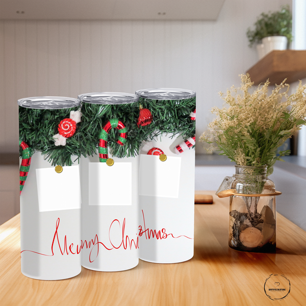 Bring the festive spirit with you everywhere you go with our Winter Wonderland custom tumbler! Adorned with candy canes and peppermint candies, and featuring the elegant script "Merry Christmas," this tumbler can keep your drink hot for up to 6 hours and cold for up to 24 hours. Personalize it with a name and add up to 3 photos for a truly unique and joyful touch!
